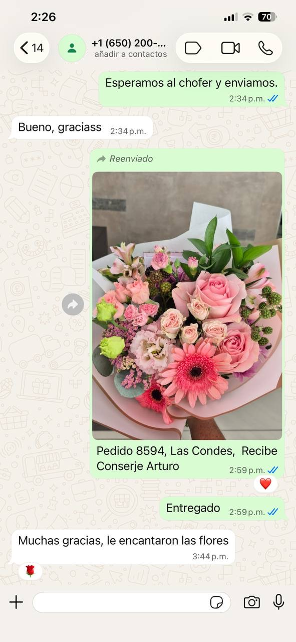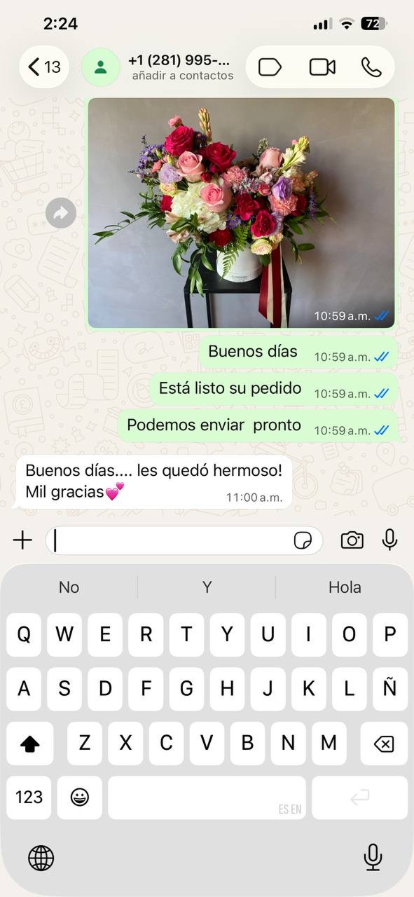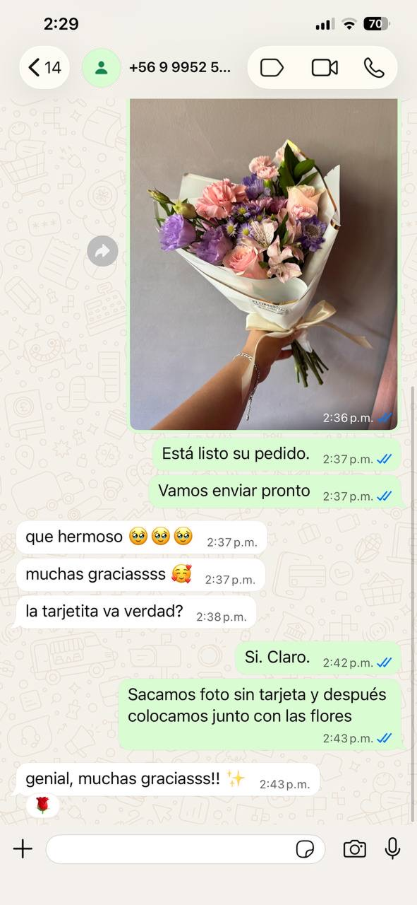 Escriba en el chat si tiene alguna pregunta¡Recibe foto de tu ramo por WhatsApp!
