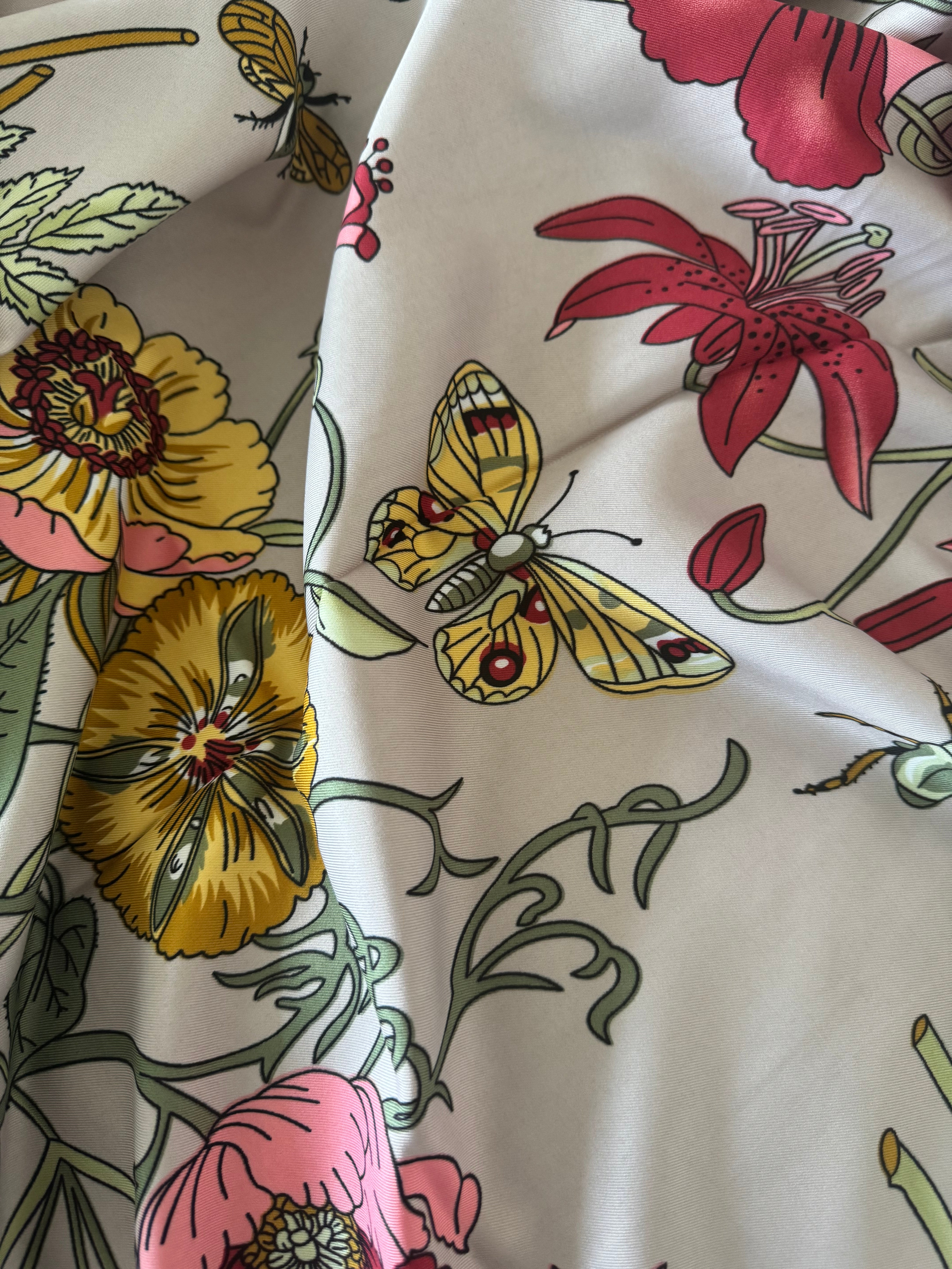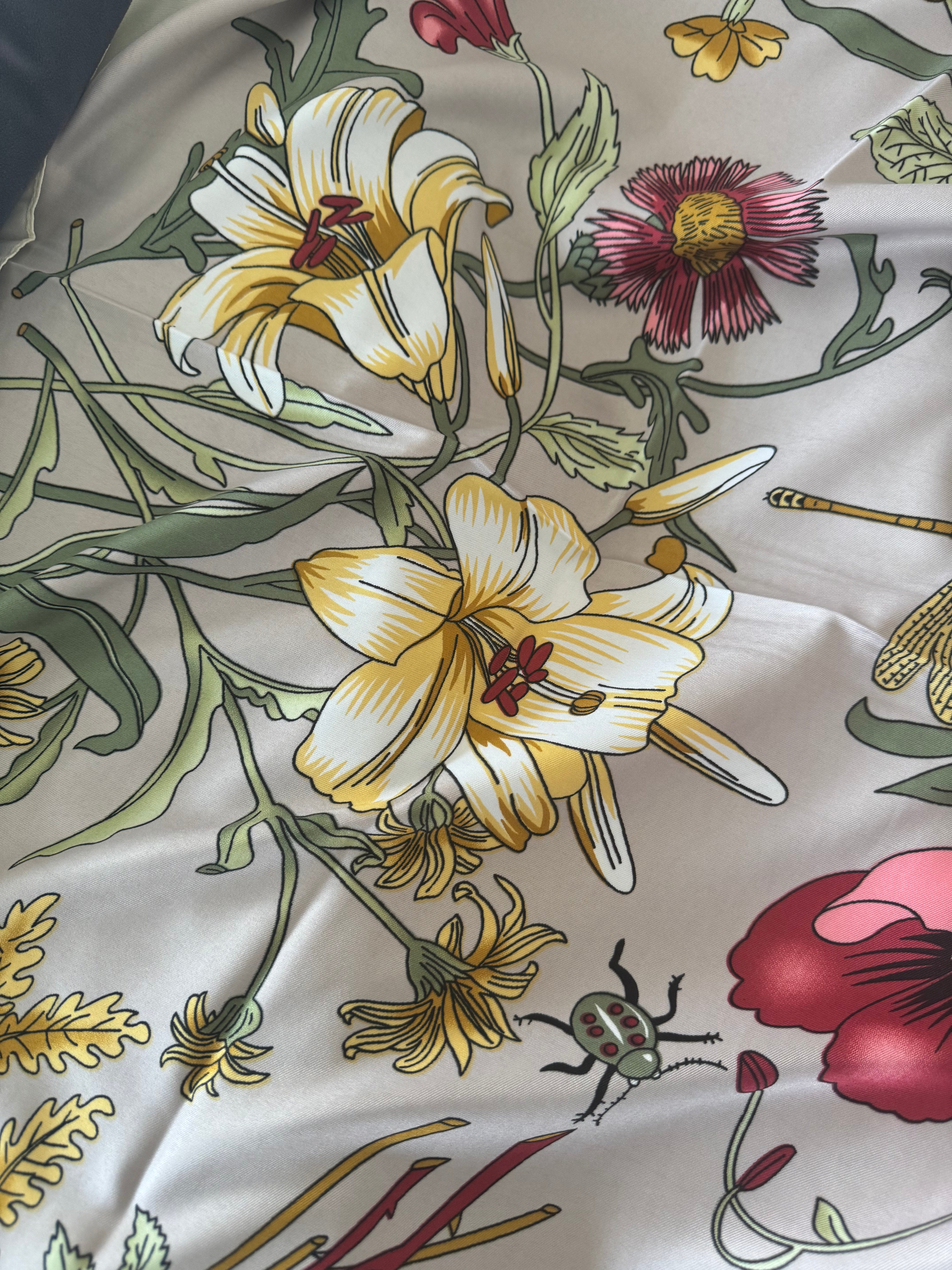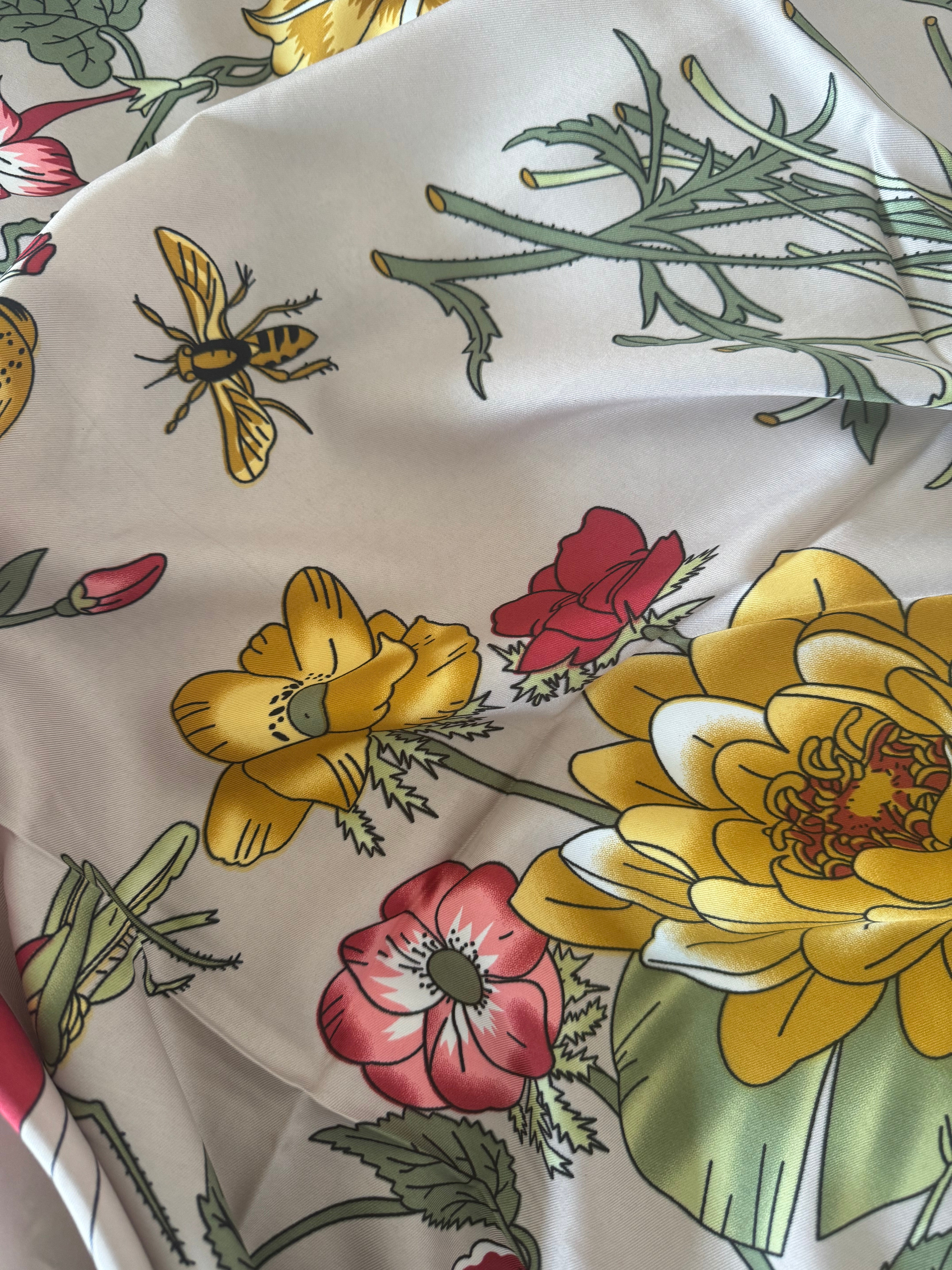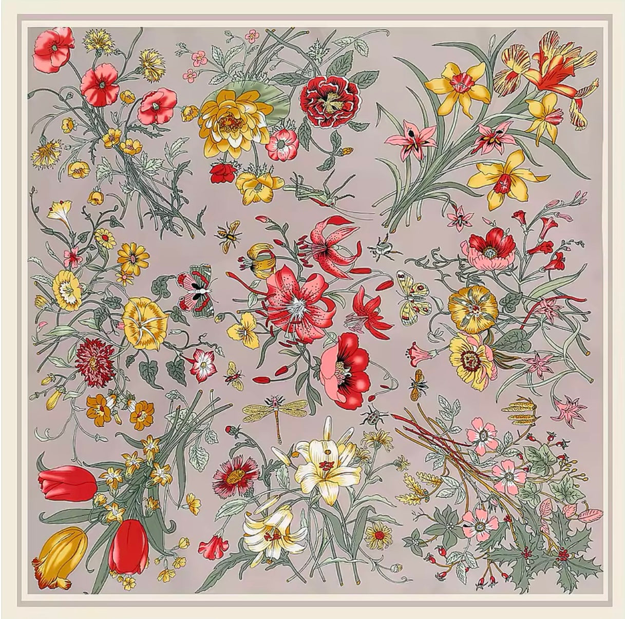 Un precioso pañuelo de mujer en lindas tonalidades con dibujo de flores ornamentales hecho de 100% de seda natural. Tamaño 130x130 cm. Viene envuelto con mucho cariño en papel decorativo y con cinta. Un maravilloso regalo para una fecha especial como Día de San Valentín, Cumpleaños, Aniversario, o un Agradecimiento del Equipo laboral.