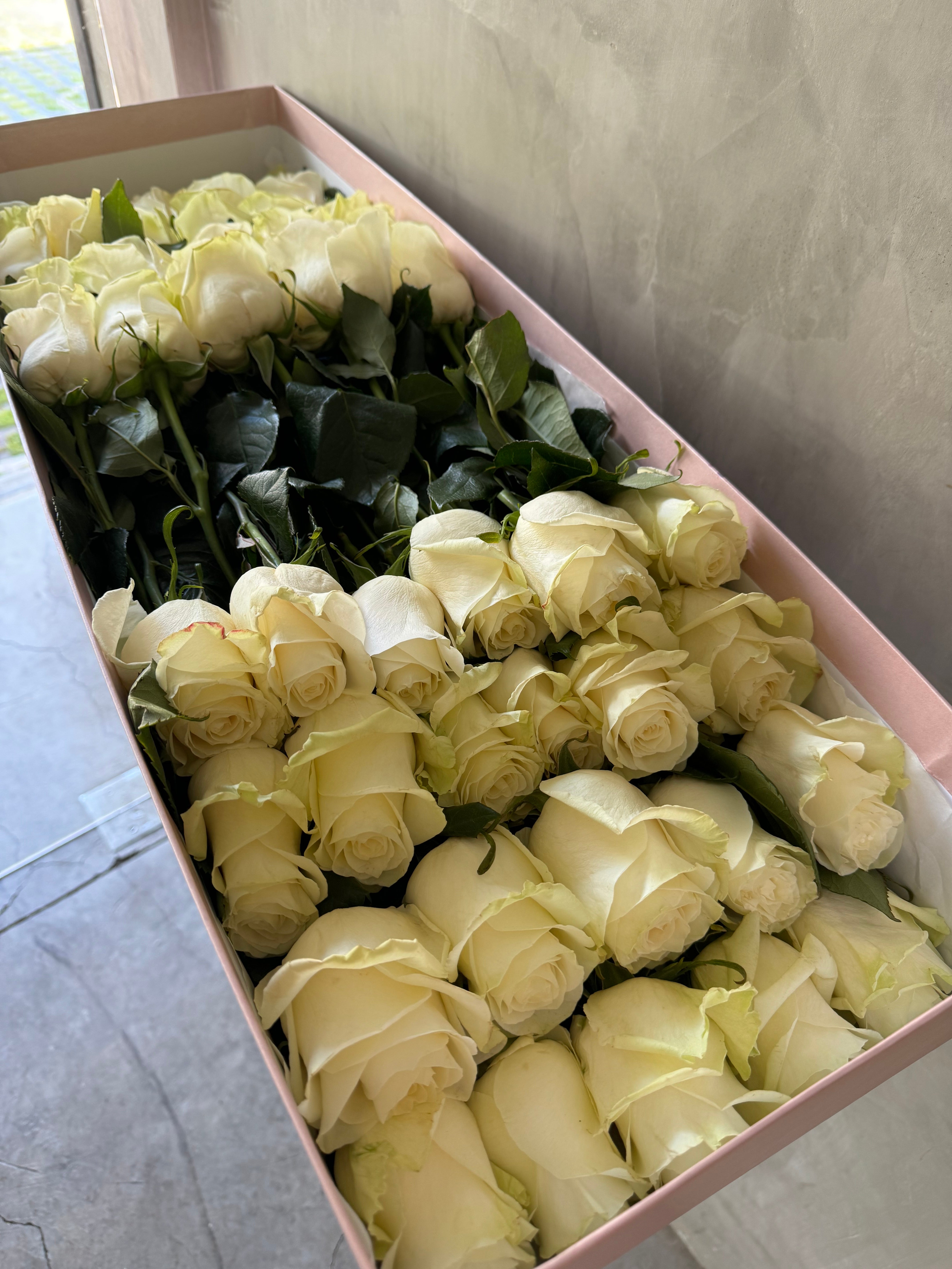 Rosas blancas en caja