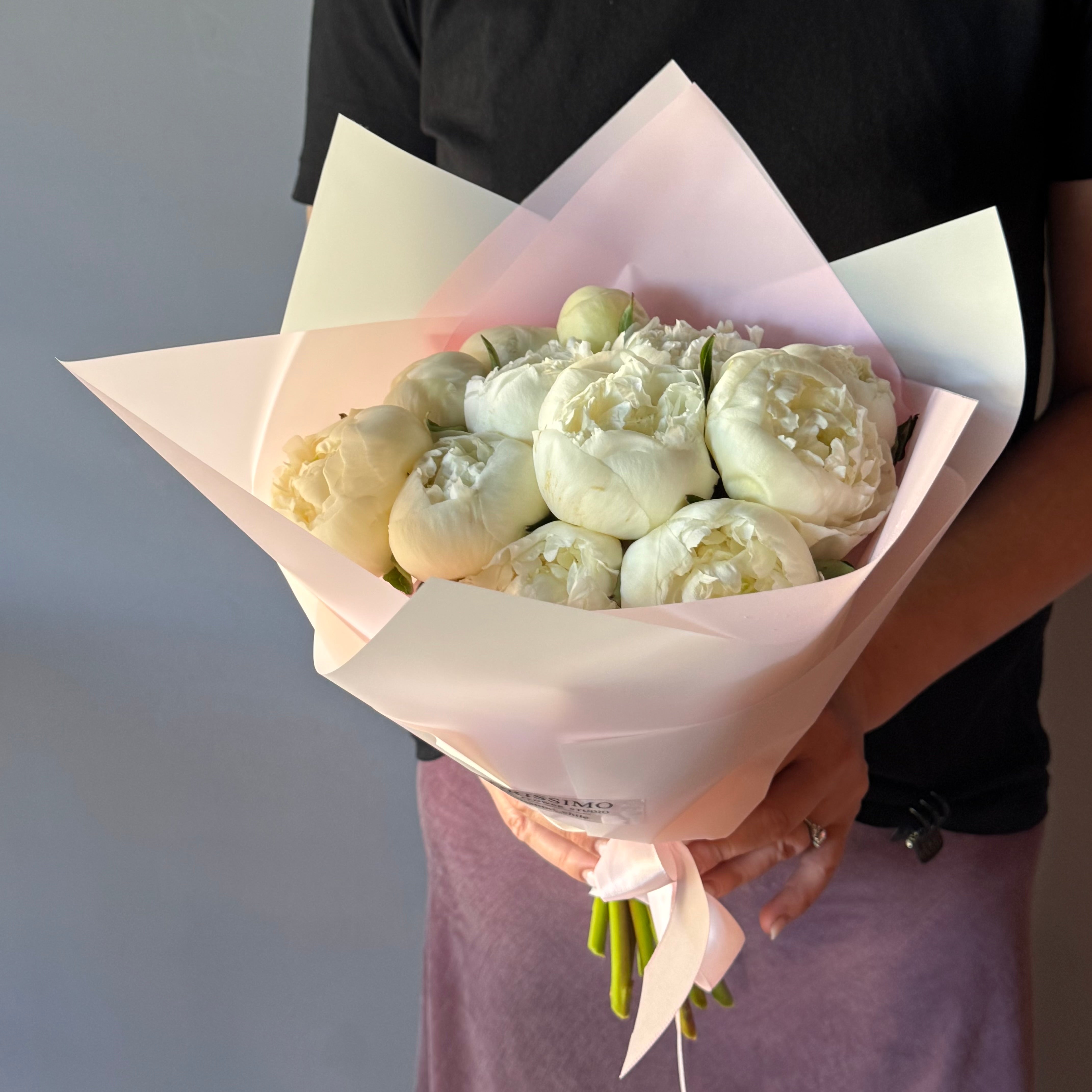 Este hermoso ramo de 12 peonias blancas es el regalo perfecto. Cada flor, delicada y fragante, ha sido cuidadosamente seleccionada y dispuesta en un formato simple y elegante, que sin duda impresionará a tu ser querido. Haz que su día sea especial con este ramo de peonias blancas de alta calidad.