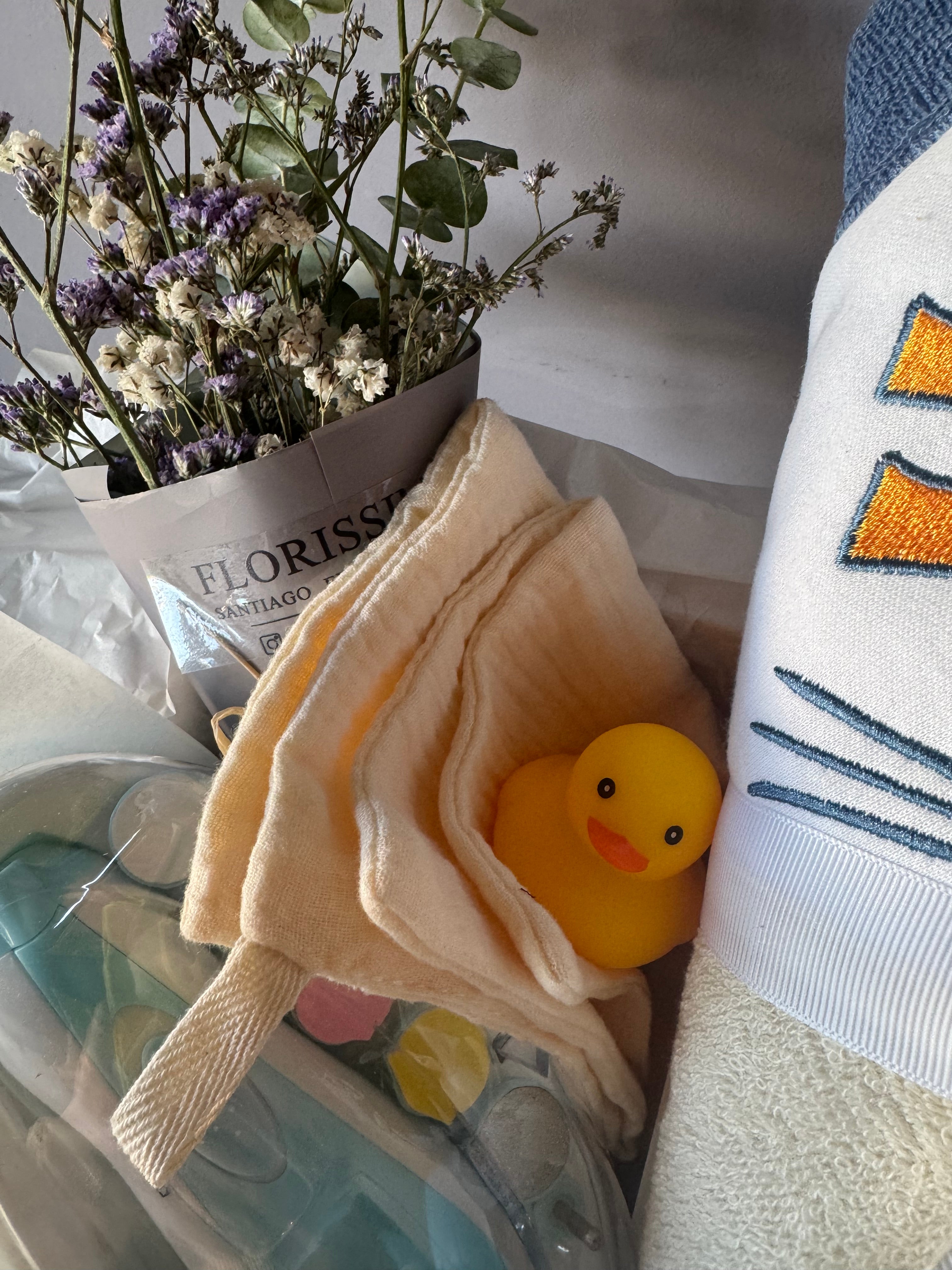 - 1 mini patito para acompañar a la guagua en su primer baño 🐥