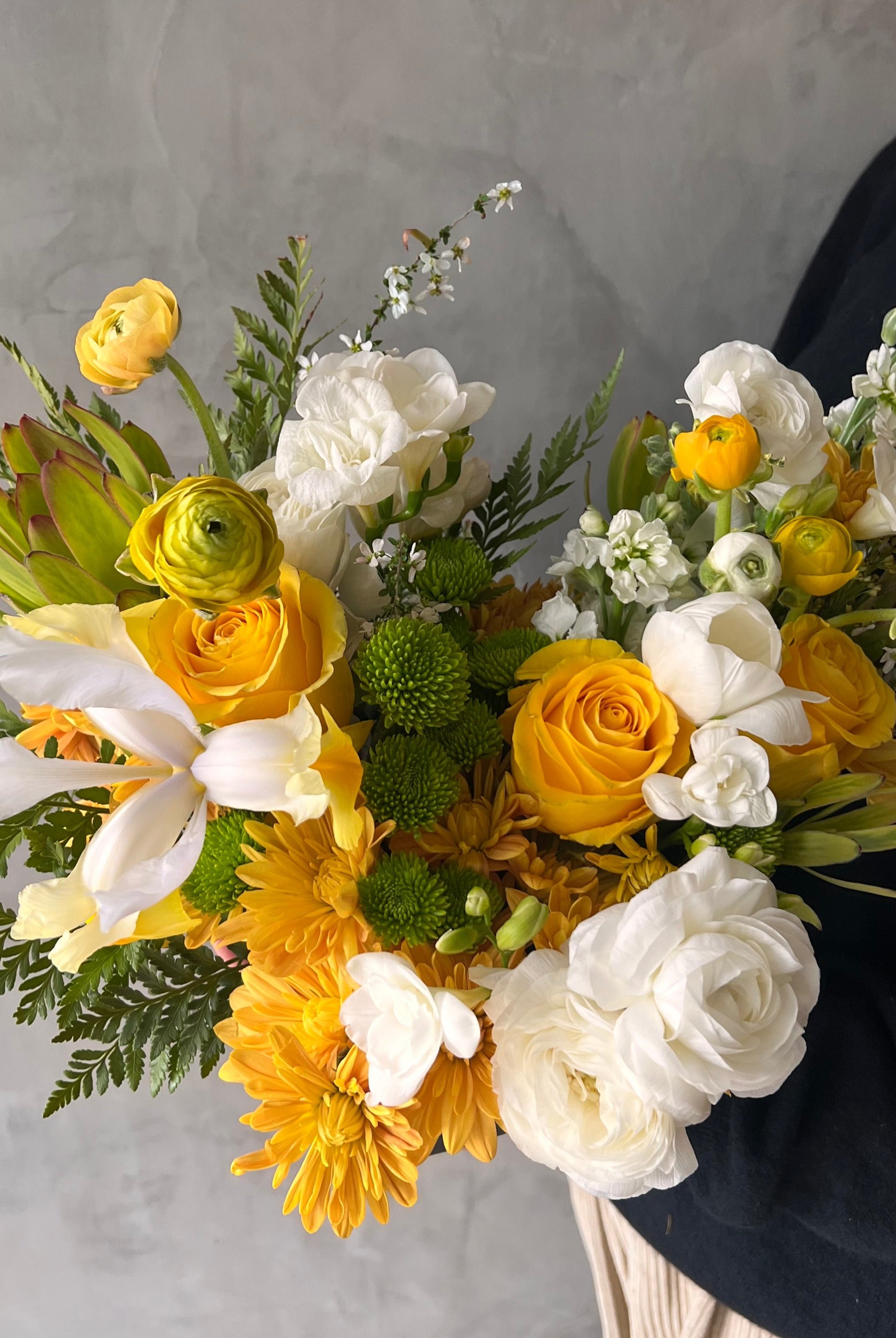 Entendemos lo importante que es para ti elegir el ramo perfecto. Queremos que sepas que cada uno de nuestros arreglos es único, creado con dedicación por nuestras expertas floristas. Las imágenes que ves son referenciales para inspirarte en la tonalidad, ya que la naturaleza nos ofrece variaciones maravillosas. Nos comprometemos mantener los colores, el tamaño y el estilo de tu elección, dependiendo de la disponibilidad de flores de la temporada. Confía en nosotros, cada arreglo es una pequeña obra de arte y haremos todo lo posible para lograr el mejor resultado ☺️🌹