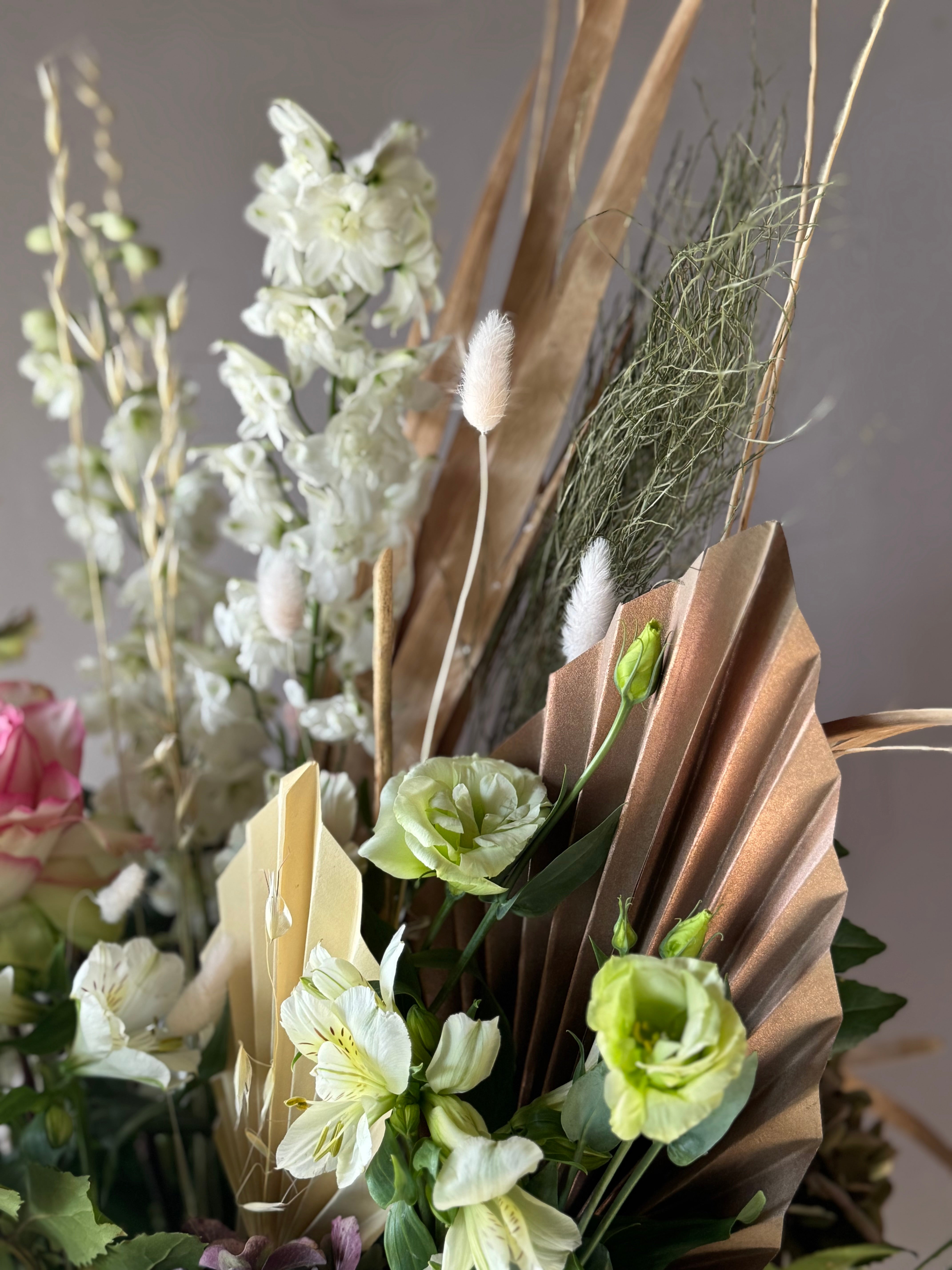 Entendemos lo importante que es para ti elegir el ramo perfecto. Queremos que sepas que cada uno de nuestros arreglos es único, creado con dedicación por nuestras expertas floristas. Las imágenes que ves son referenciales para inspirarte en la tonalidad, ya que la naturaleza nos ofrece variaciones maravillosas. Nos comprometemos mantener los colores, el tamaño y el estilo de tu elección, dependiendo de la disponibilidad de flores de la temporada. Confía en nosotros, cada arreglo es una pequeña obra de arte y haremos todo lo posible para lograr el mejor resultado ☺️🌹
