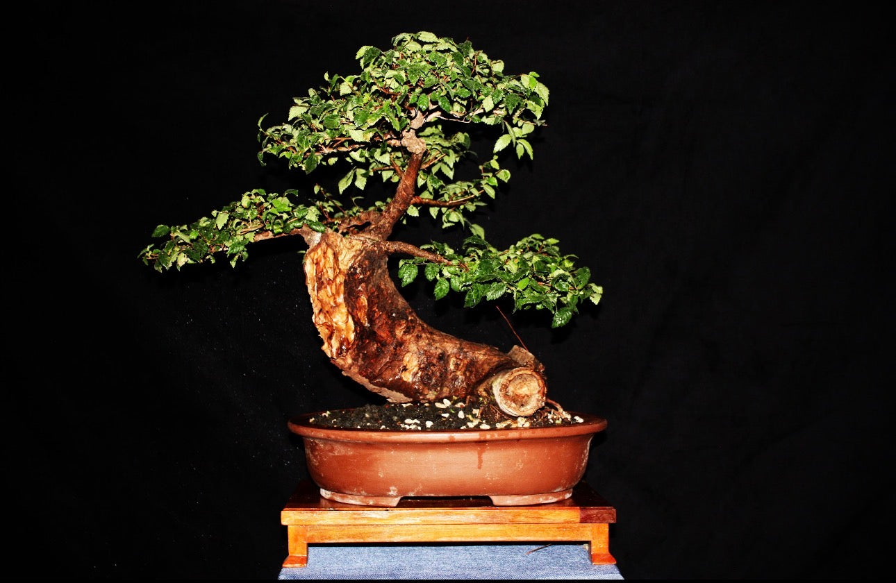 Bonsái Olmo (Ulmus minor) de 55 cm de altura y 6 años de cultivo. Su porte elegante y ramificación equilibrada reflejan madurez y armonía. Un árbol caducifolio que conecta con el ritmo de la naturaleza, ideal para quienes valoran la belleza en constante transformación.
