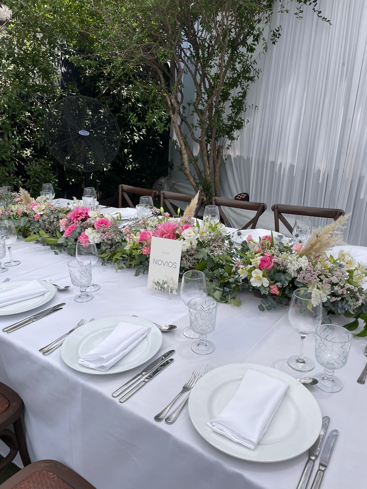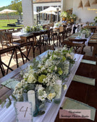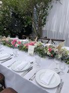 Camino de flores frescas para la mesa infinita es una decoración elegante y chic para esta noche inolvidable! Precio final depende del montaje/desmontaje cual se calcula aparte y depende de la comuna de instalación, horarios ect.