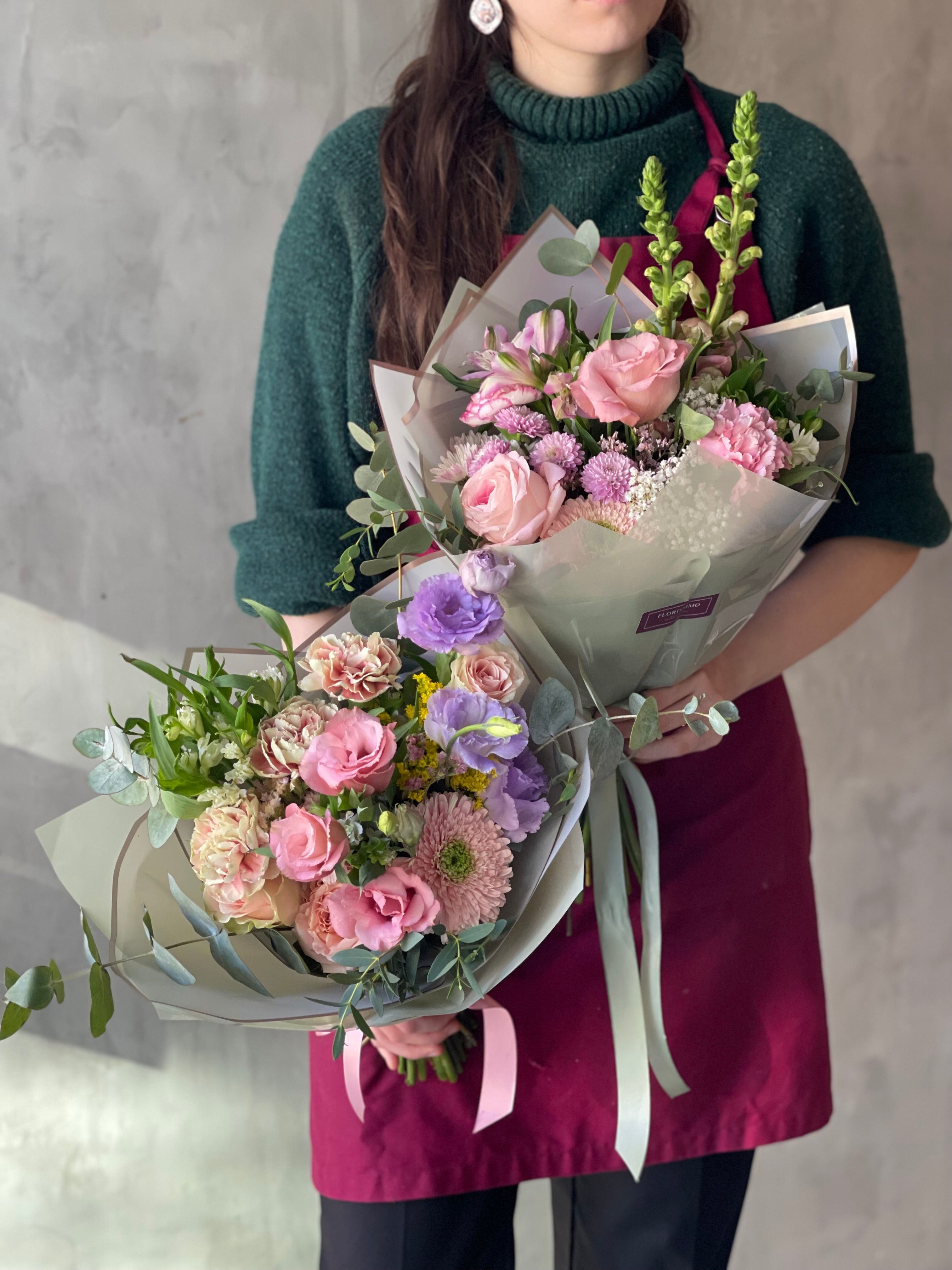 Cada ramo que ofrecemos es una obra única, creada con esmero por nuestras talentosas floristas. Debido a la variabilidad estacional y a la disponibilidad de flores, el producto final puede diferir ligeramente de las imágenes mostradas. Las fotos sirven como referencia para la elección de la tonalidad, forma y diseño, pero no garantizan una réplica exacta del arreglo.