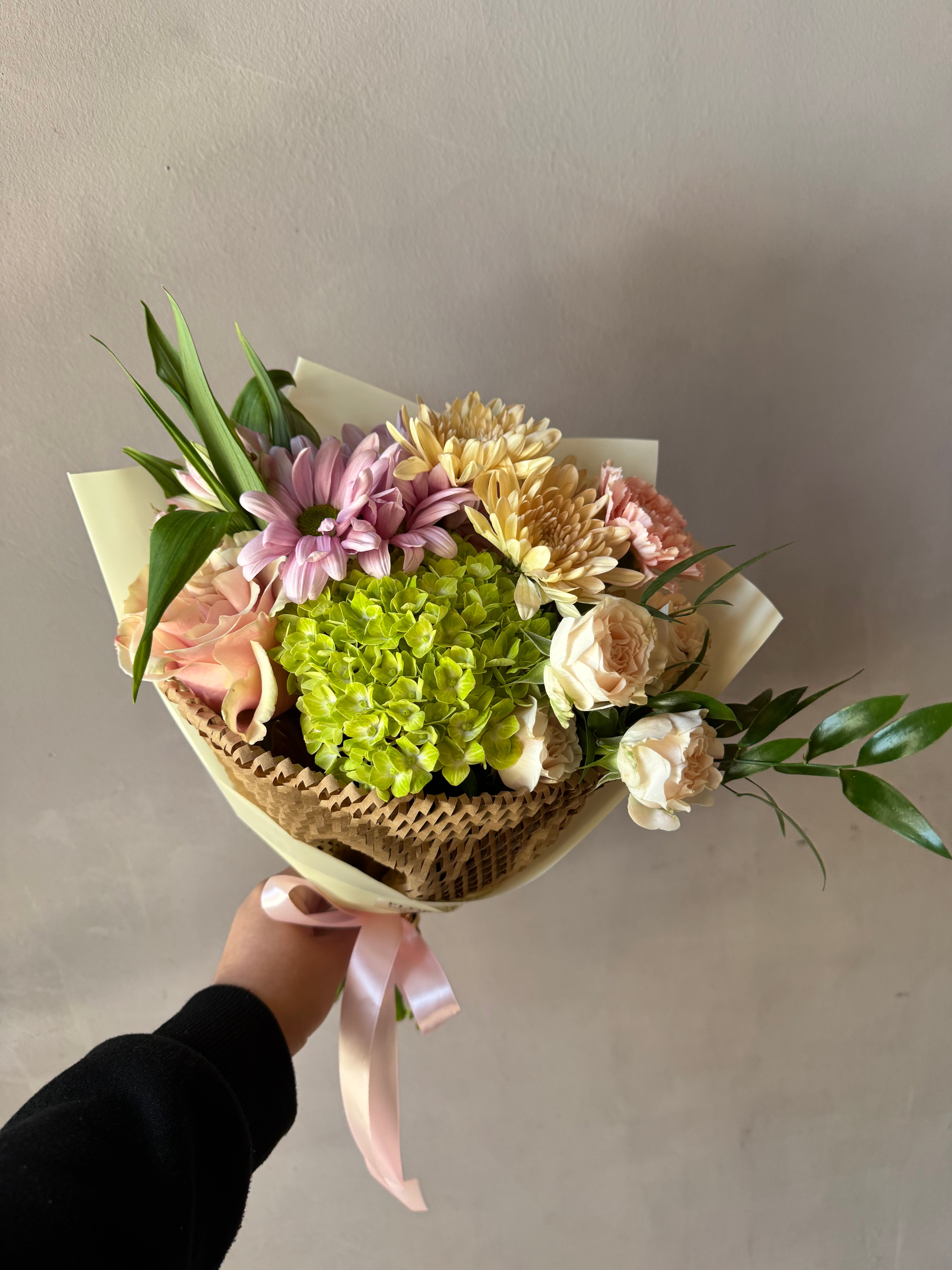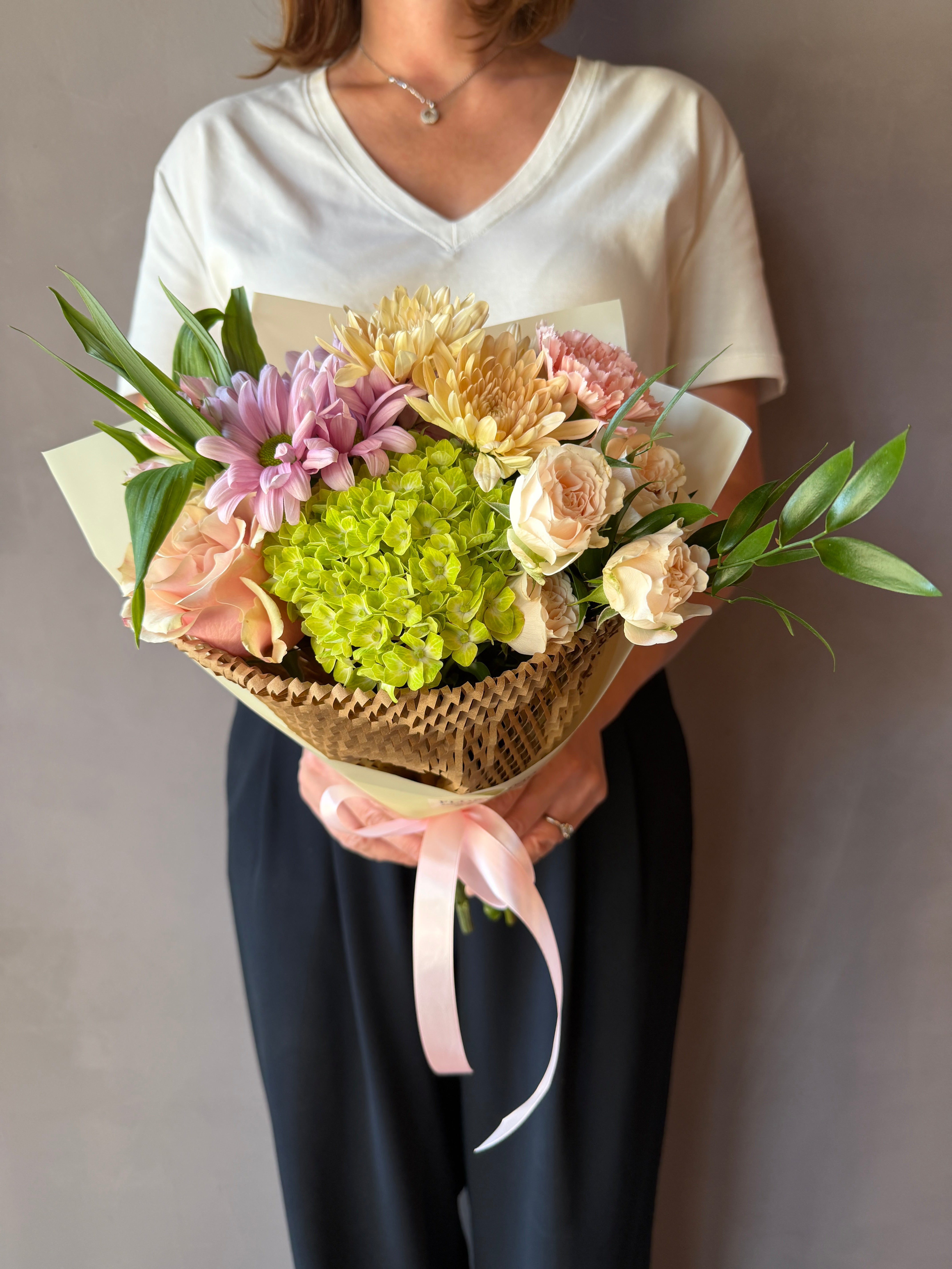 El Bouquet pequeño es una opción elegante y económica para diversas ocasiones cotidianas. Su diseño compacto y ligero facilita su transporte y uso. Este ramo se caracteriza por su estética alegre, ideal para transmitir un mensaje positivo sin comprometer el presupuesto.