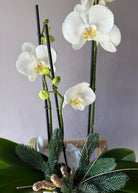 Esta hermosa jardinera de madera es el regalo perfecto para estas navidades. Incluye una delicada planta de orquídea blanca y un pequeño pero hermoso adorno navideño. Fácil de cuidar y con una larga duración, es un regalo que seguramente encantará a quien lo reciba.