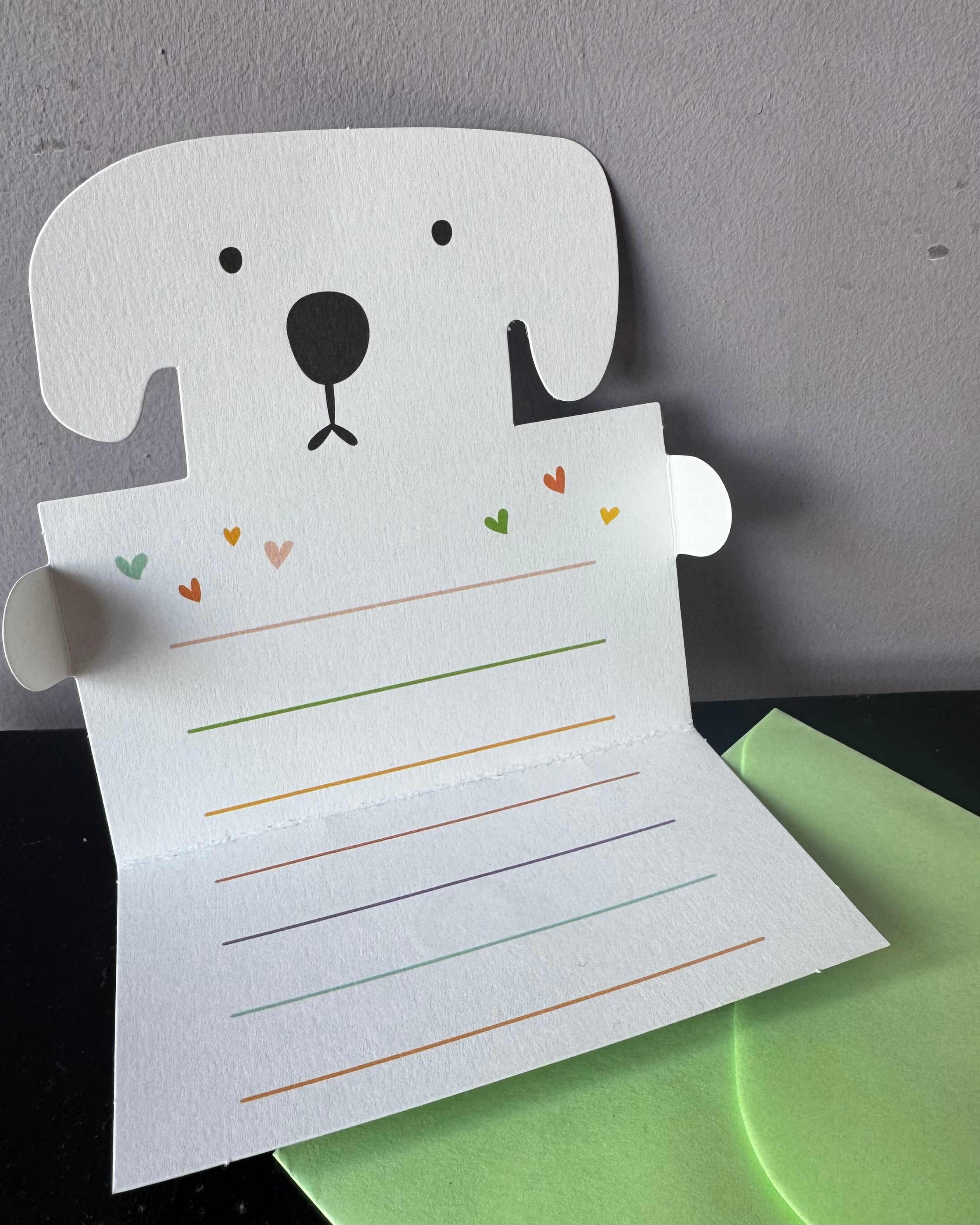Tarjeta en sobre perrito blanco