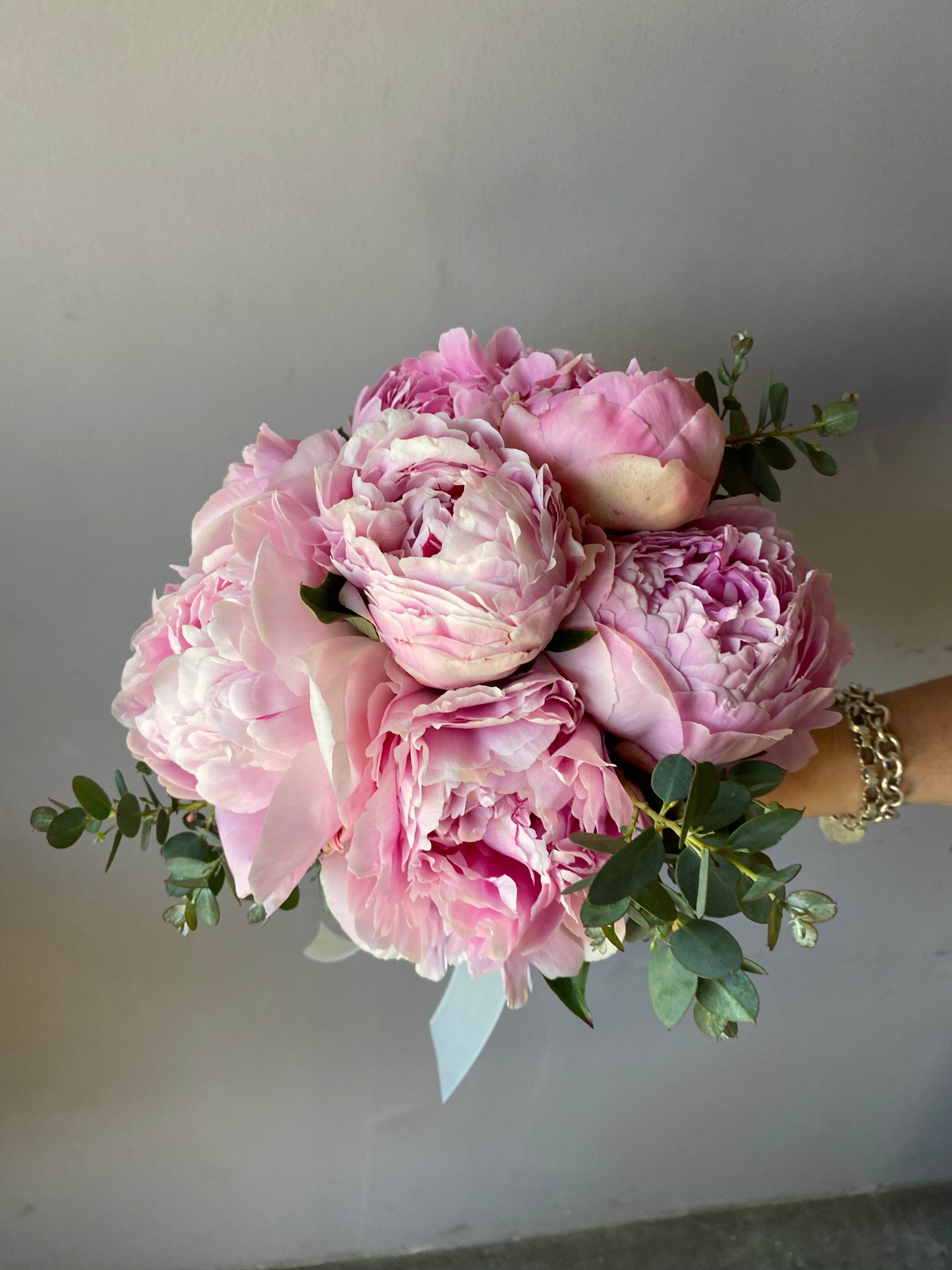 Este ramo de novia con peonias rosadas es una opción ideal para bodas románticas y elegantes. Las peonias, flores conocidas por su belleza y amor, son una de las favoritas de siempre. Añade un toque de encanto y romance a tu gran día con este ramo.