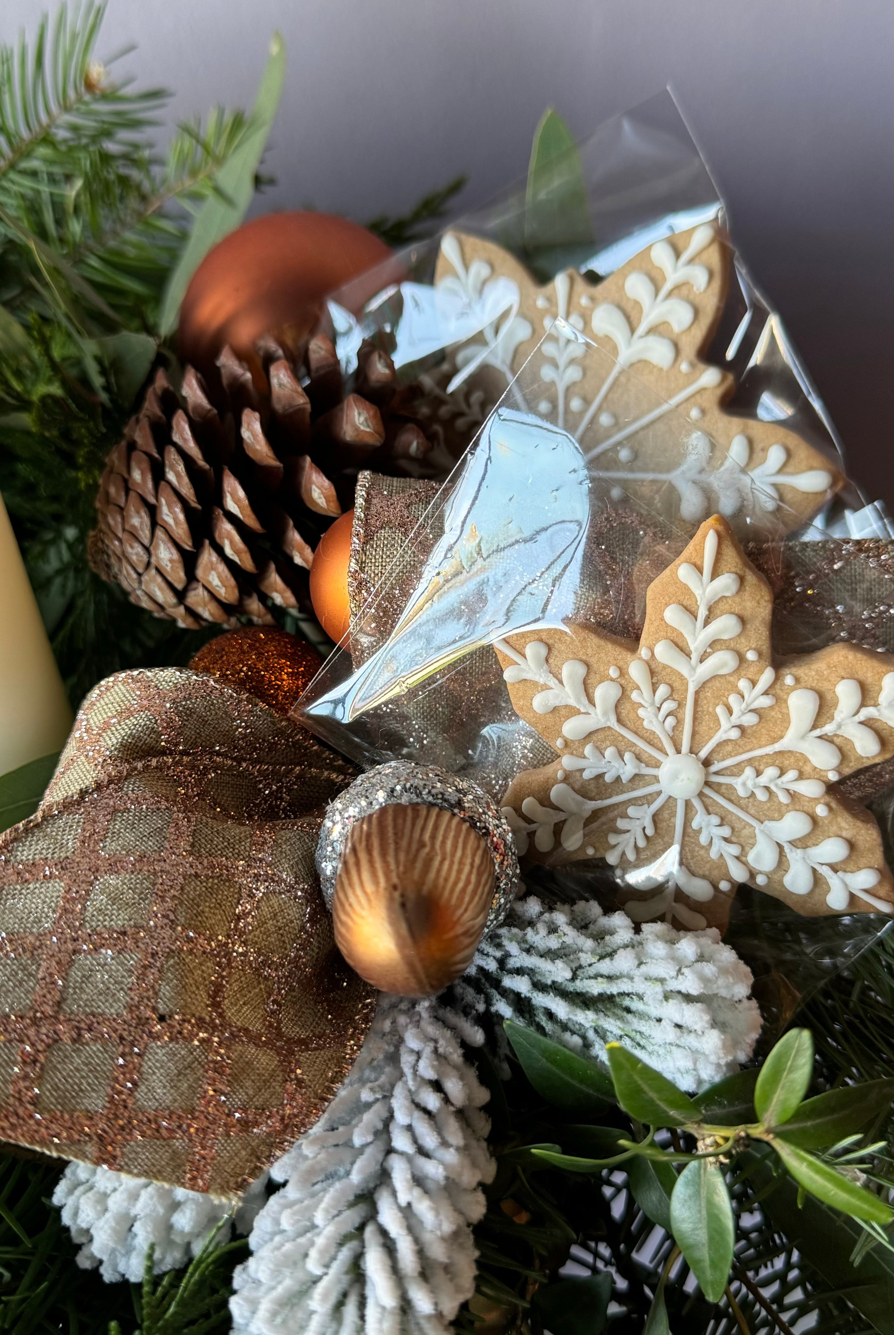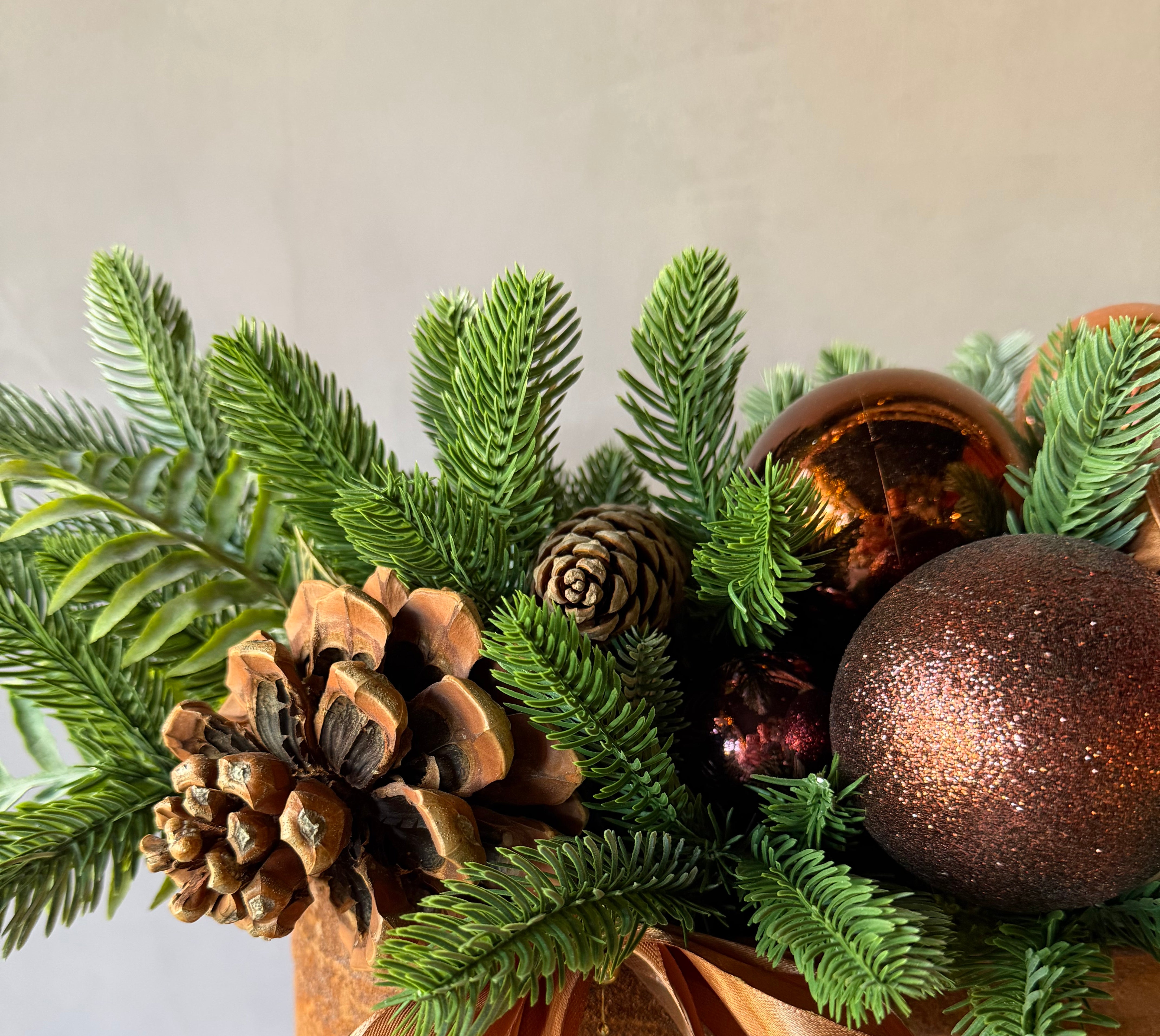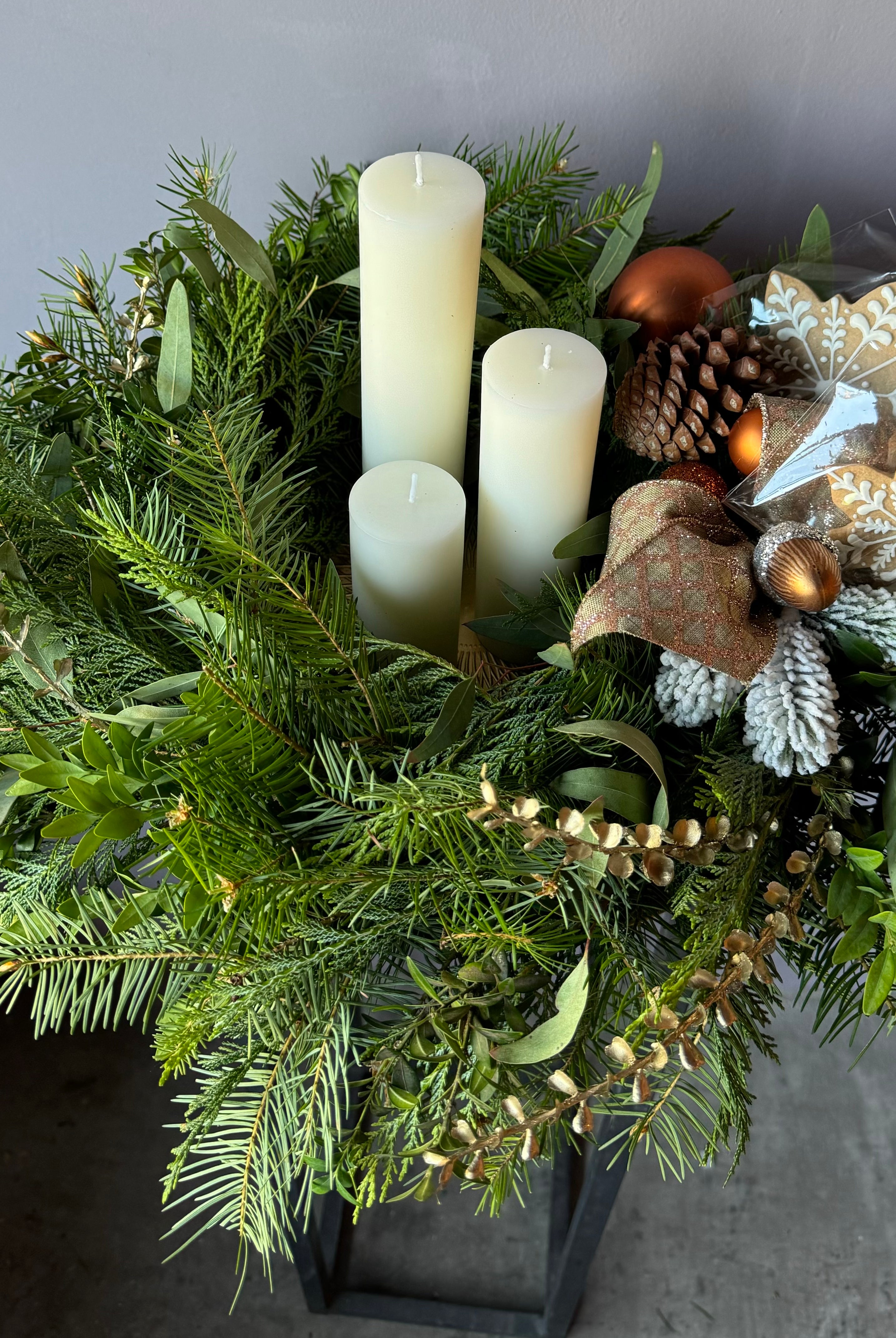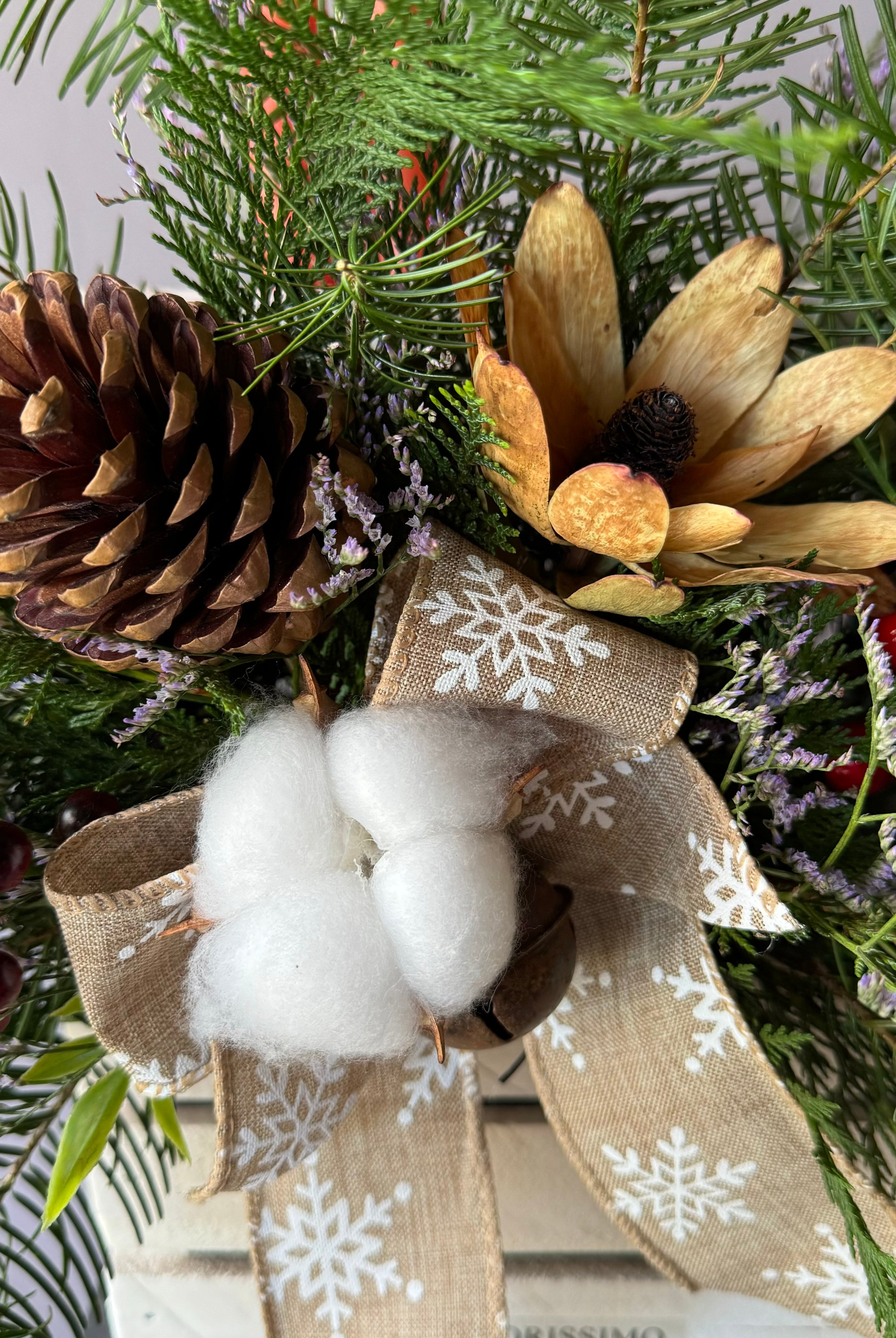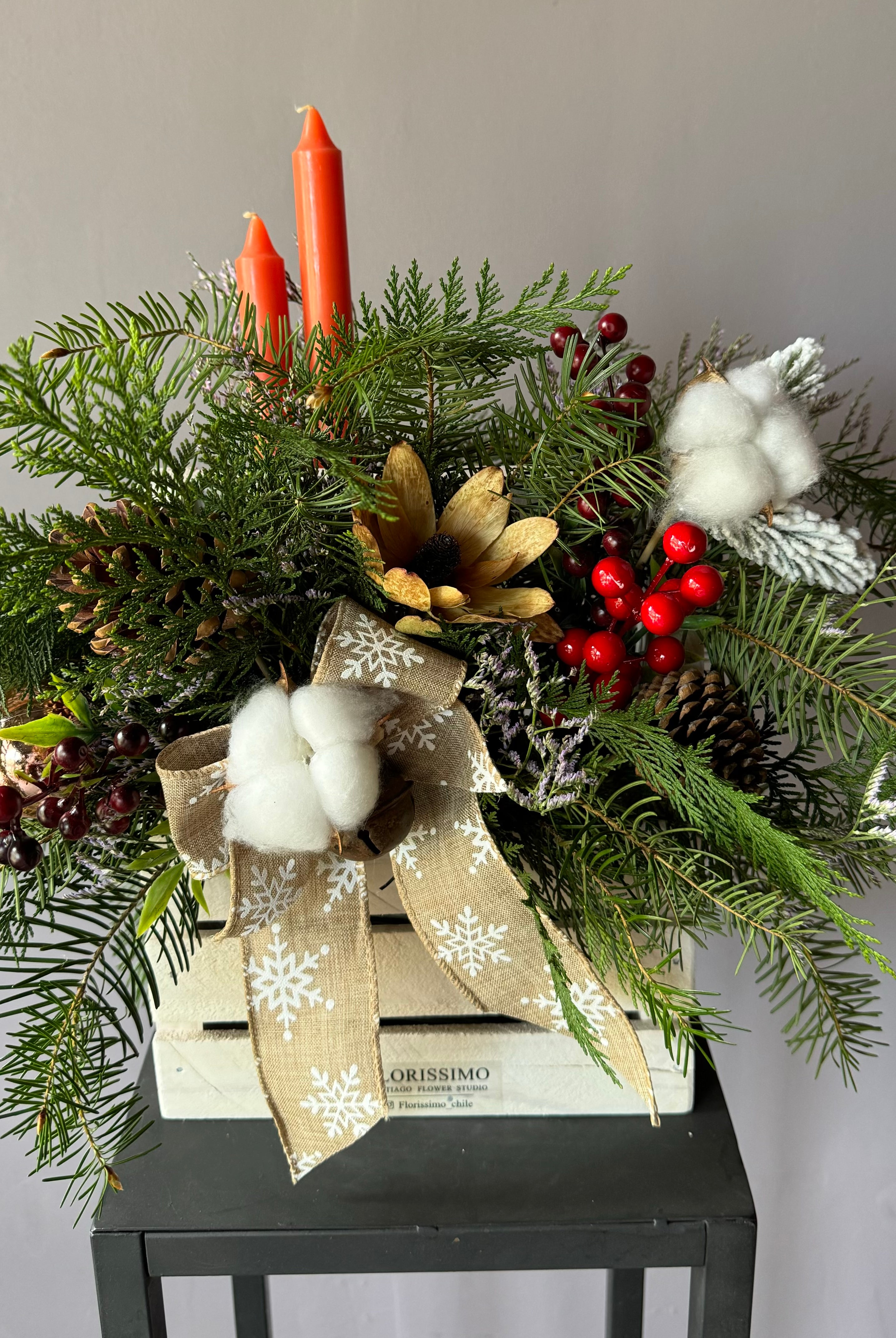 Arreglos de pino fresco y coronas les aconsejamos agendar para las fechas más cercanas a la Navidad, para asegurar su frescura a esta fecha. También le informamos que no es recomendable mantenerlos afuera de la casa, dejar en el sol y ojalá evitar movimientos innecesarios para que no se desarmen.