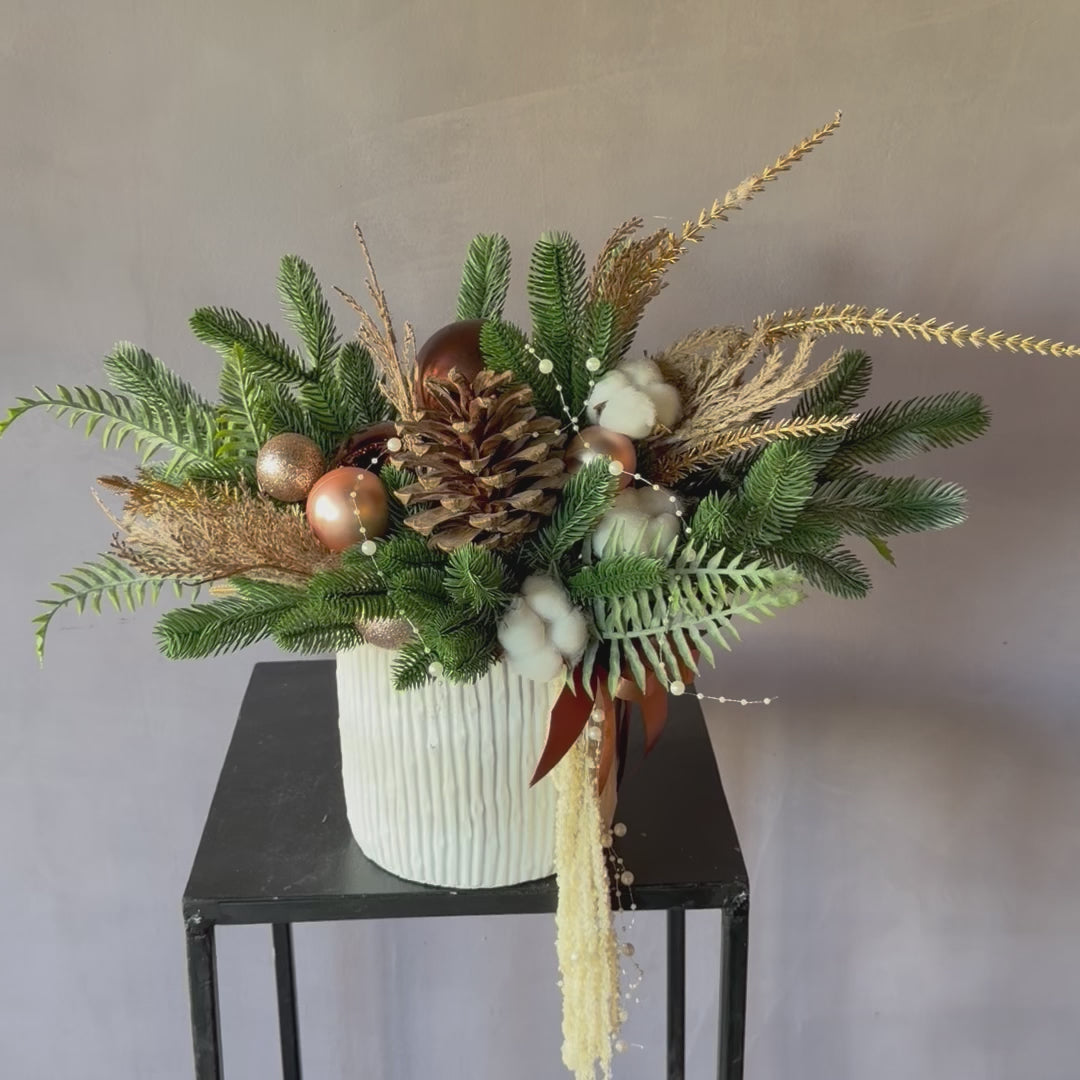 Arreglo navideño en maceta de cerámica, Colección 2025, Noël de Oro