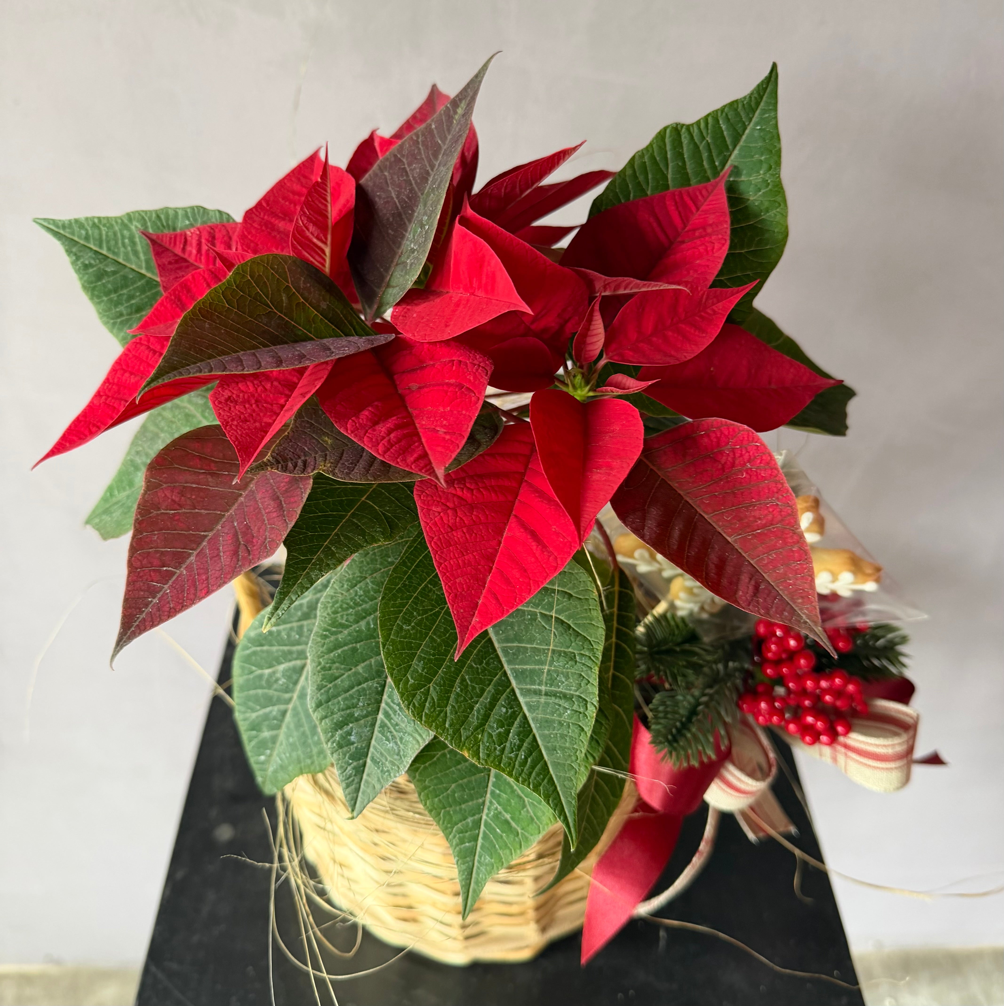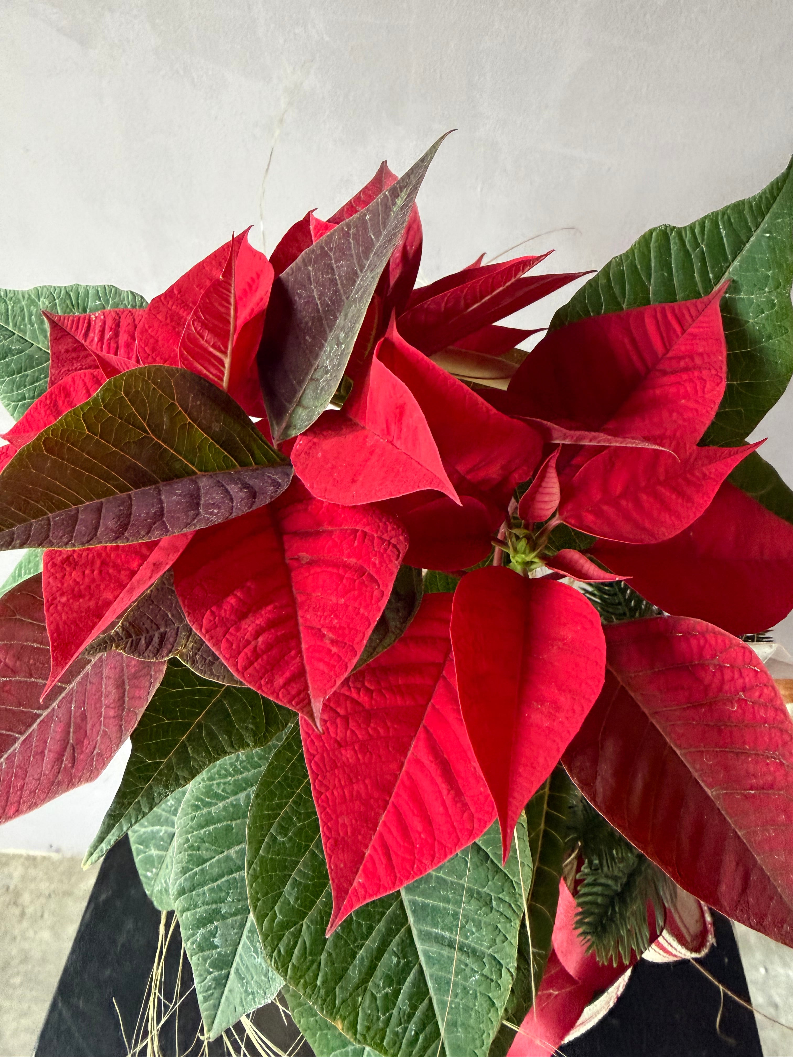 Planta de poinsettia roja natural en canasta, Collecion 2025, Noël de Oro