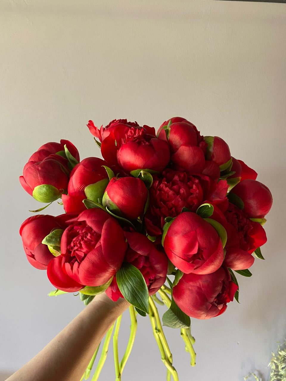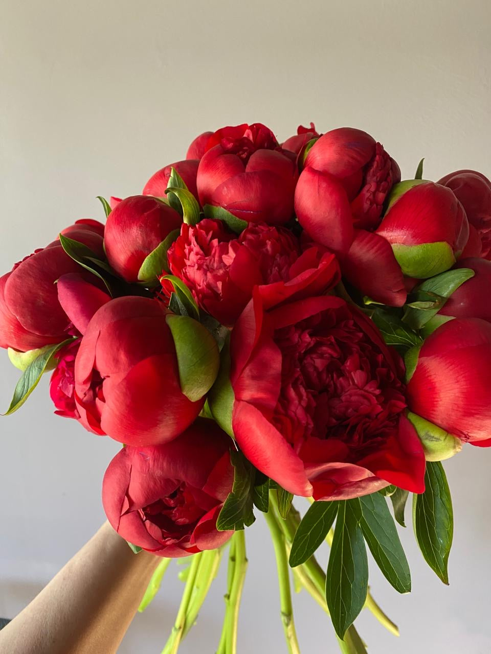 Un ramo intenso y sofisticado de peonías rojas, símbolo de pasión y amor profundo. Su textura aterciopelada y su color vibrante lo convierten en un regalo perfecto para expresar sentimientos con elegancia y fuerza.