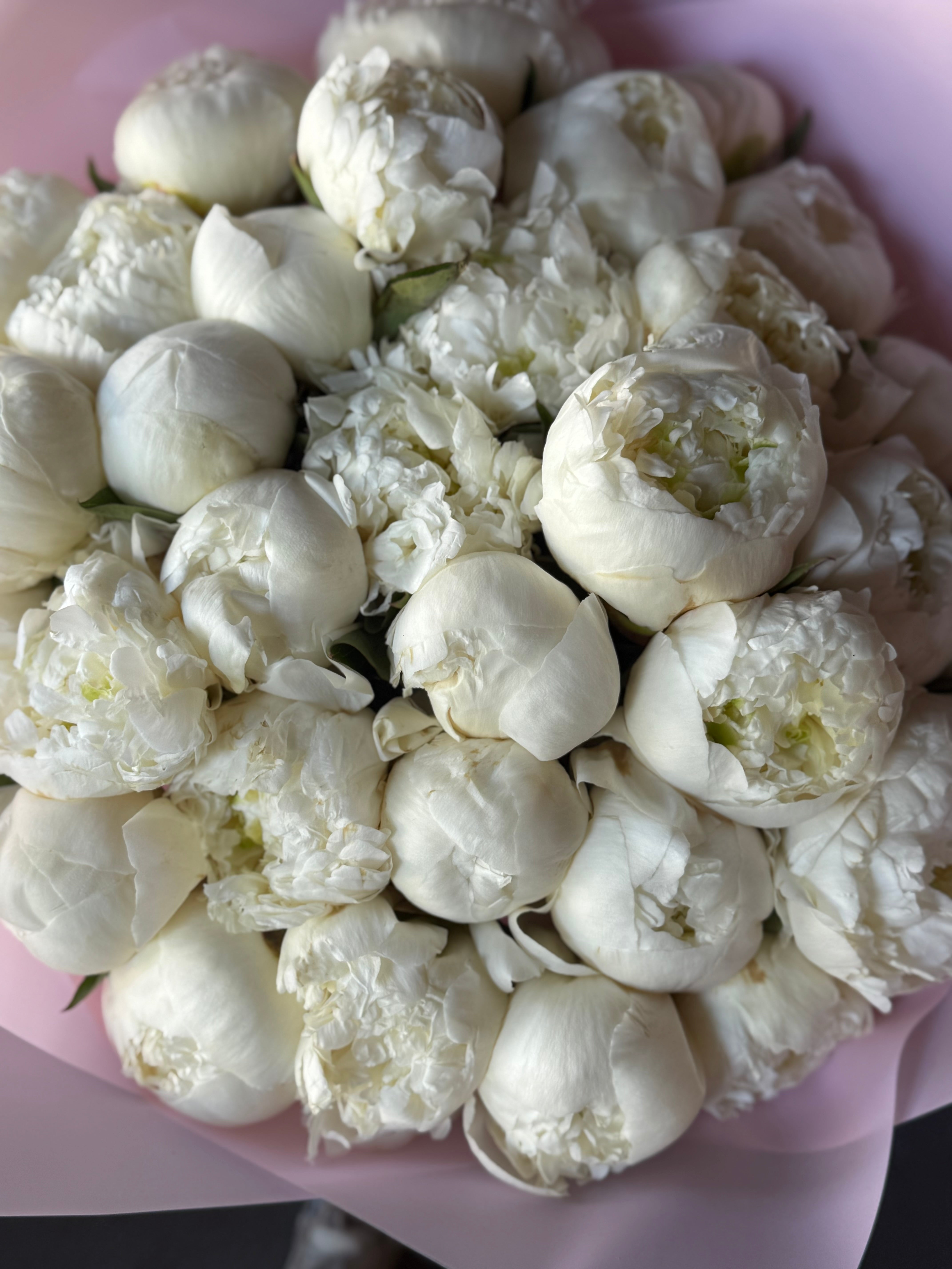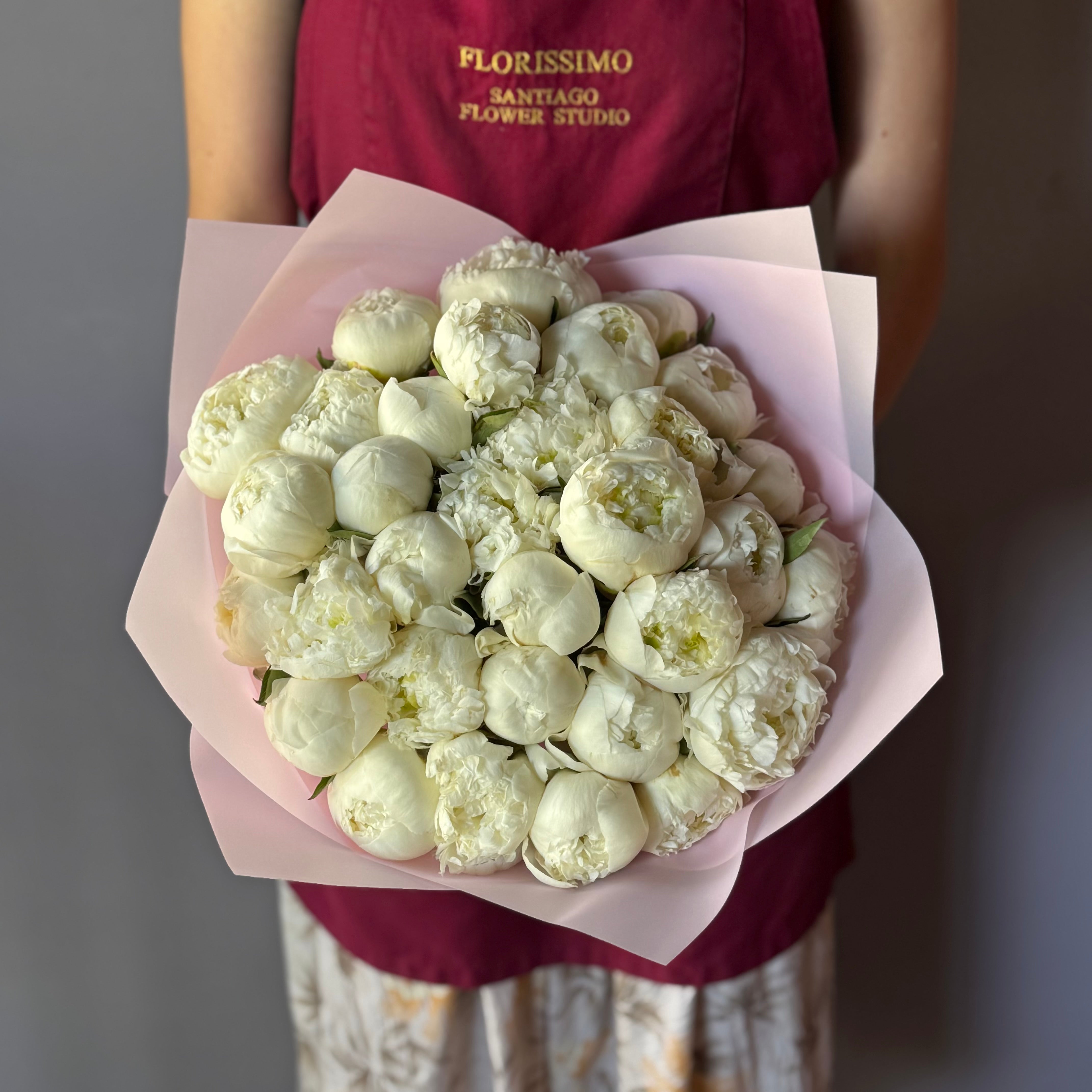 Este elegante ramo grande de 24 peonias blancas es ideal para demostrar tu amor. Las peonias son fragantes y tiernas, lo que lo convierte en el regalo perfecto para expresar tus sentimientos más sinceros. Con su estilo clásico, este ramo dejará sin palabras a esa persona especial.