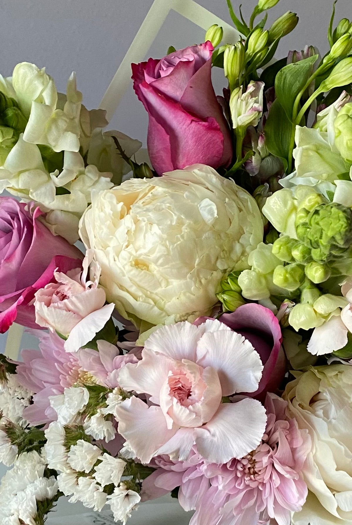 Entendemos lo importante que es para ti elegir el ramo perfecto. Queremos que sepas que cada uno de nuestros arreglos es único, creado con dedicación por nuestras expertas floristas. Las imágenes que ves son referenciales para inspirarte en la tonalidad, ya que la naturaleza nos ofrece variaciones maravillosas. Nos comprometemos mantener los colores, el tamaño y el estilo de tu elección, dependiendo de la disponibilidad de flores de la temporada. Confía en nosotros, cada arreglo es una pequeña obra de arte y haremos todo lo posible para lograr el mejor resultado ☺️🌹
