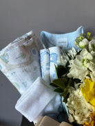 Una linda canasta M con ajuar de regalo para nacimiento de un niño.