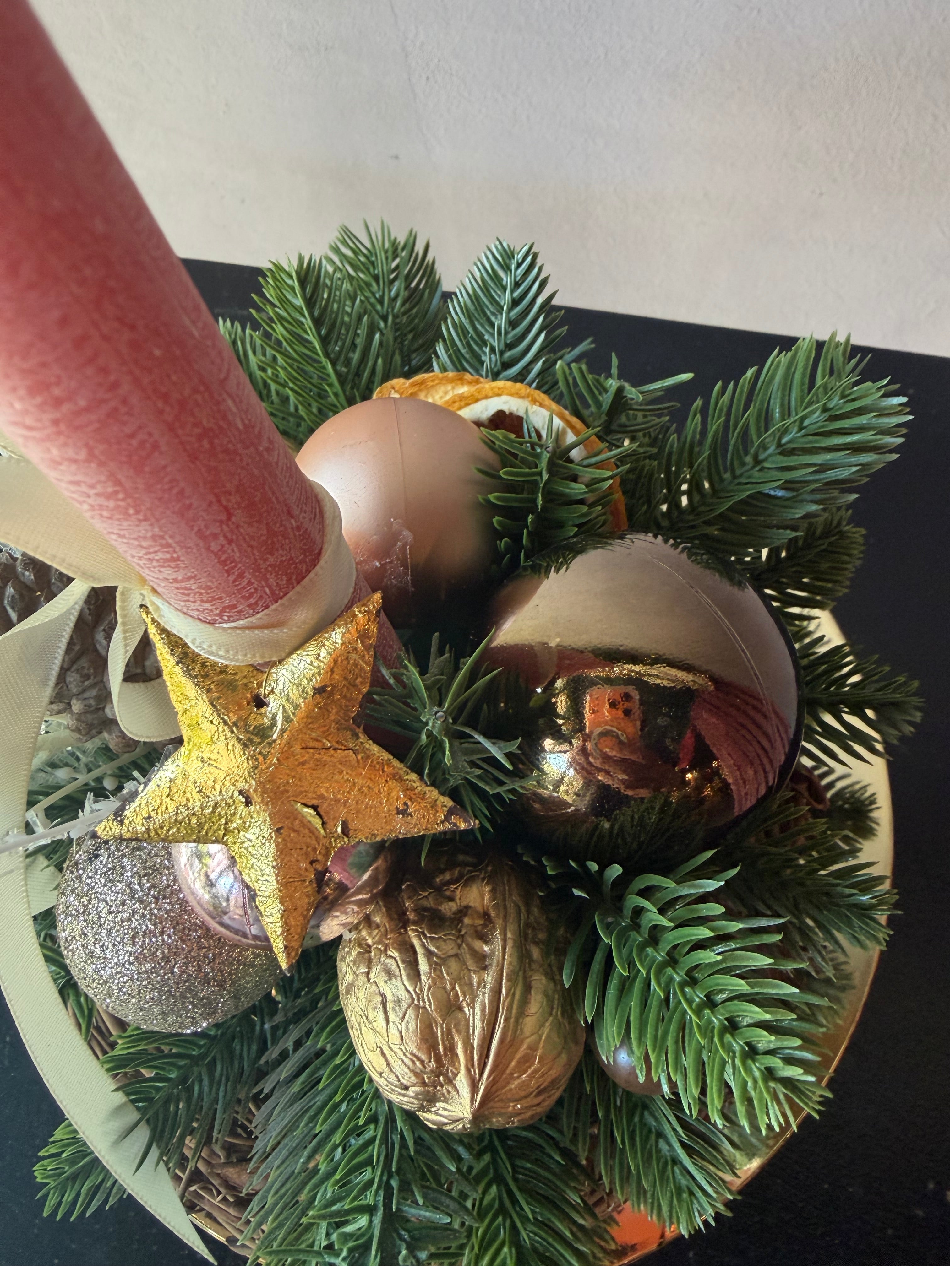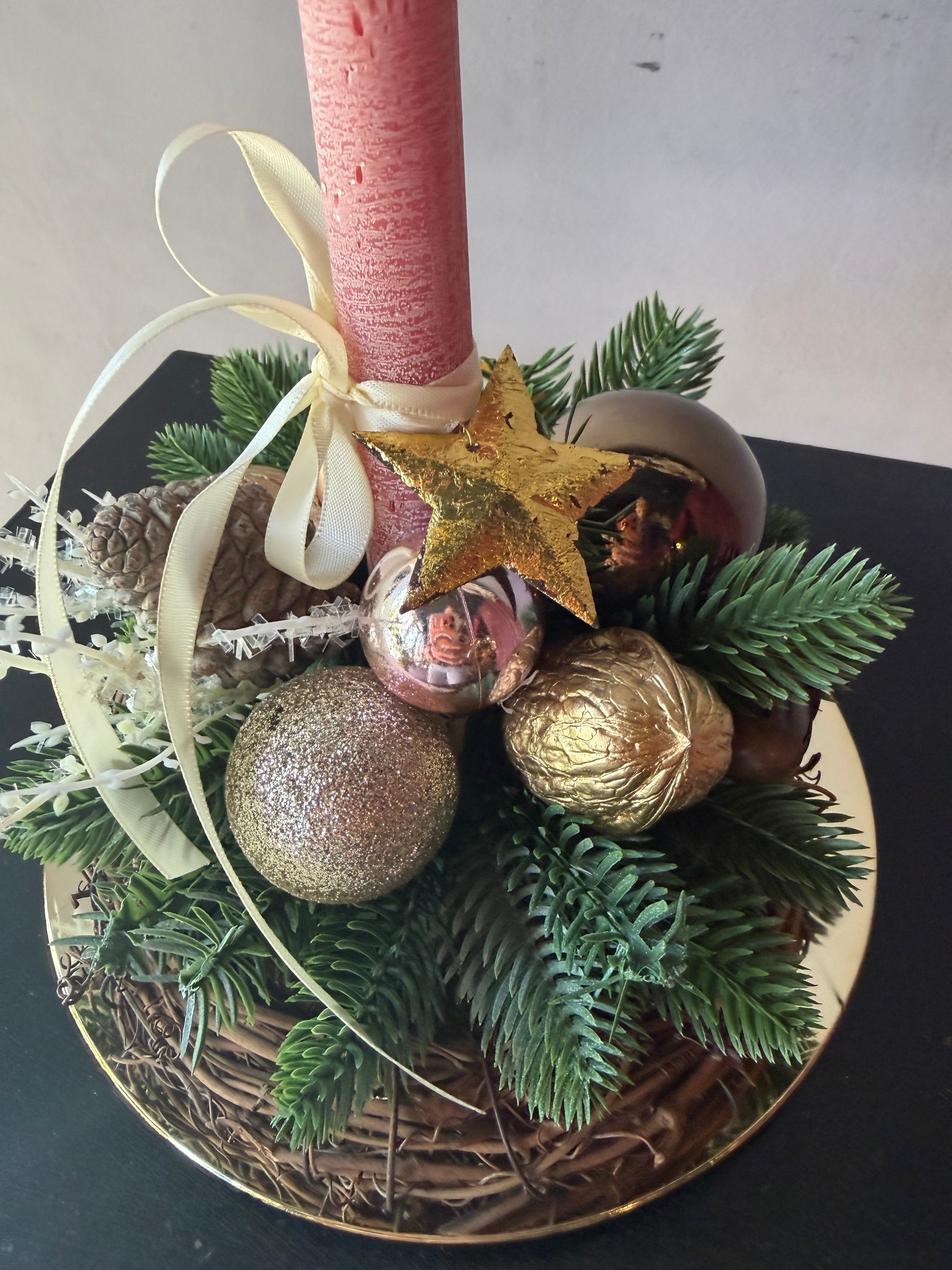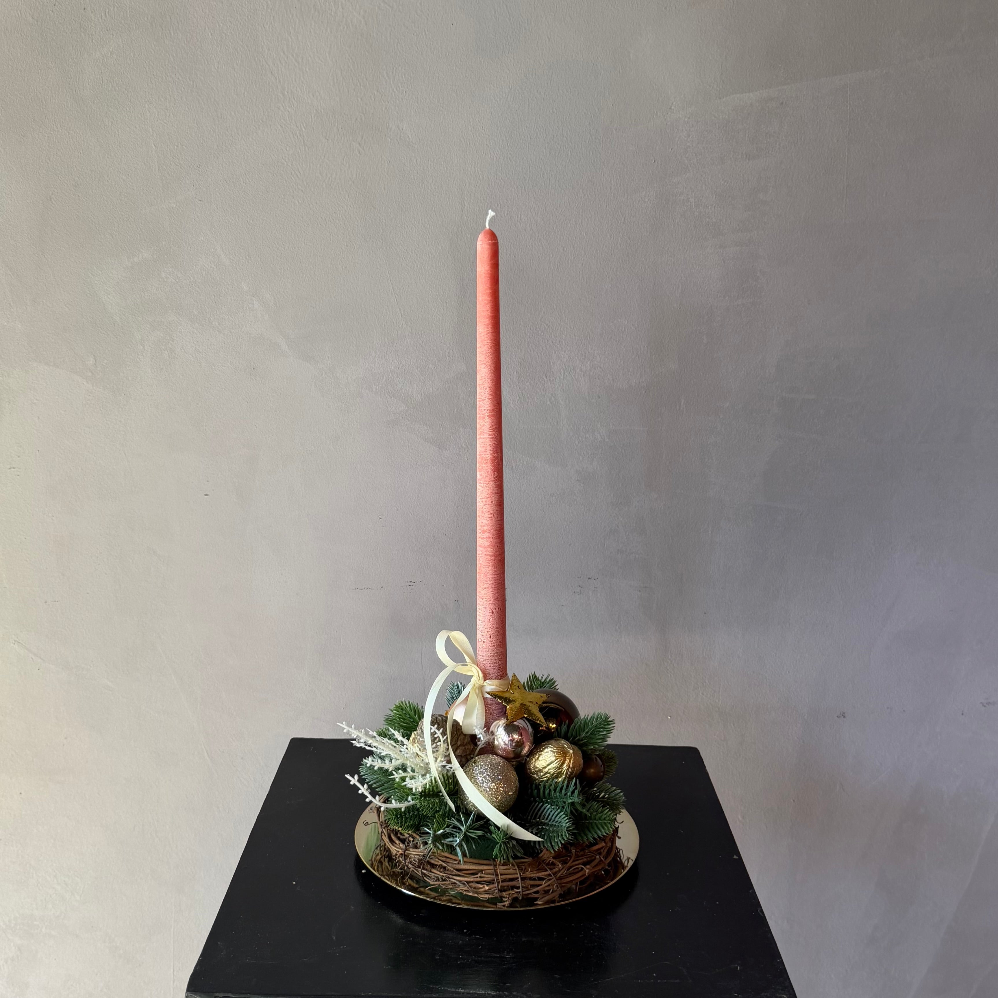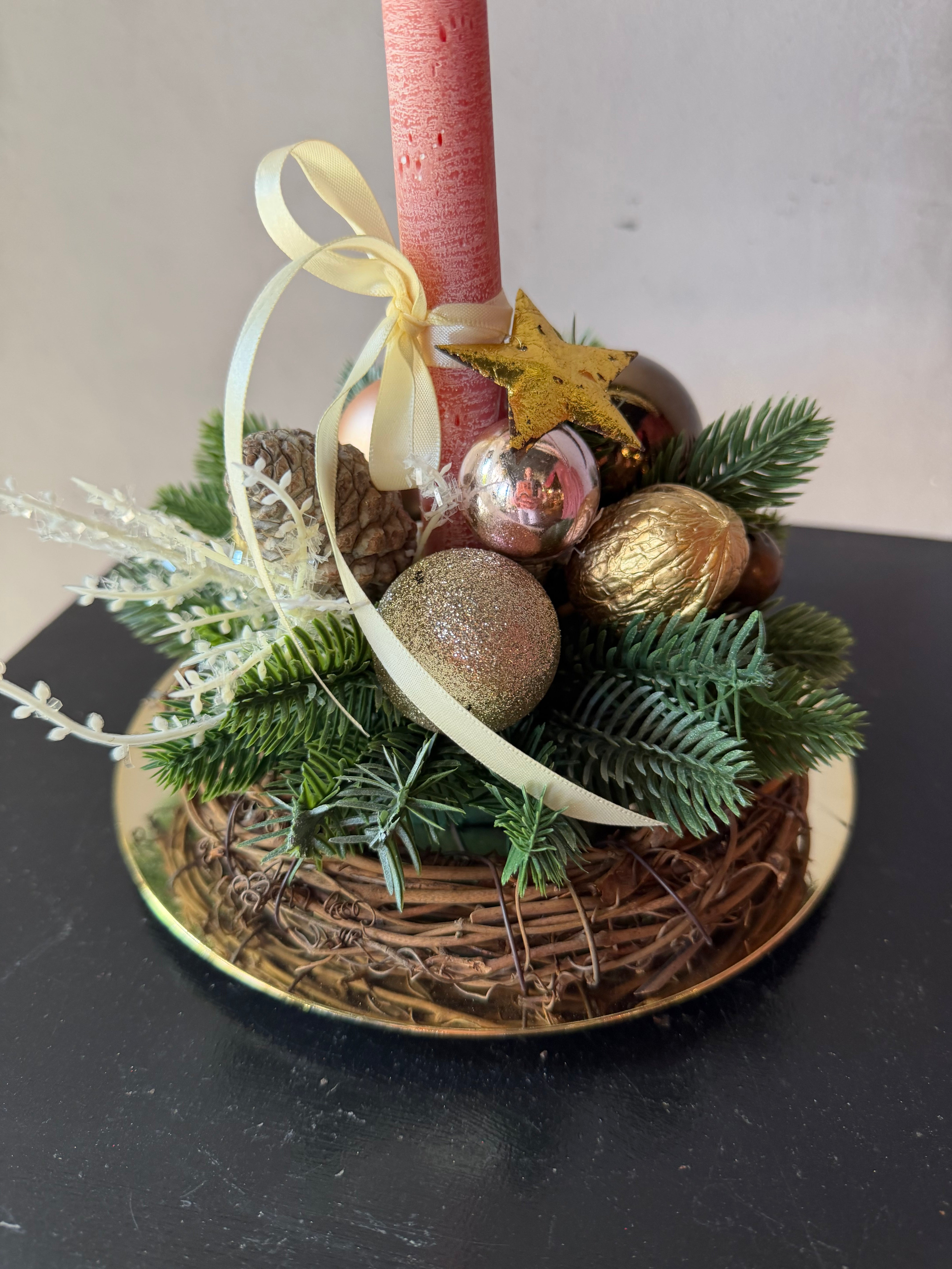 Arreglo de Navidad con 1 vela, Colección 2025, Noël de Oro