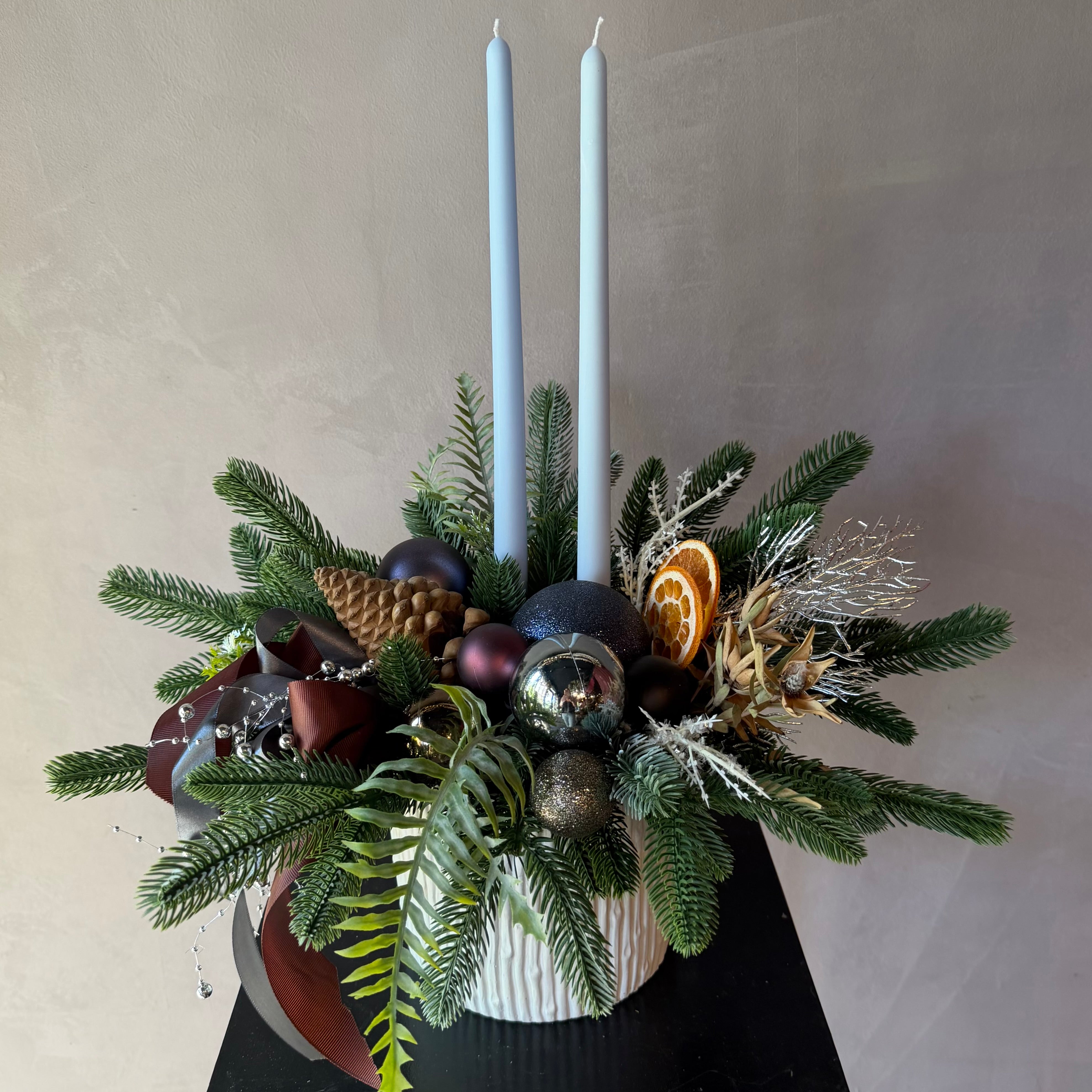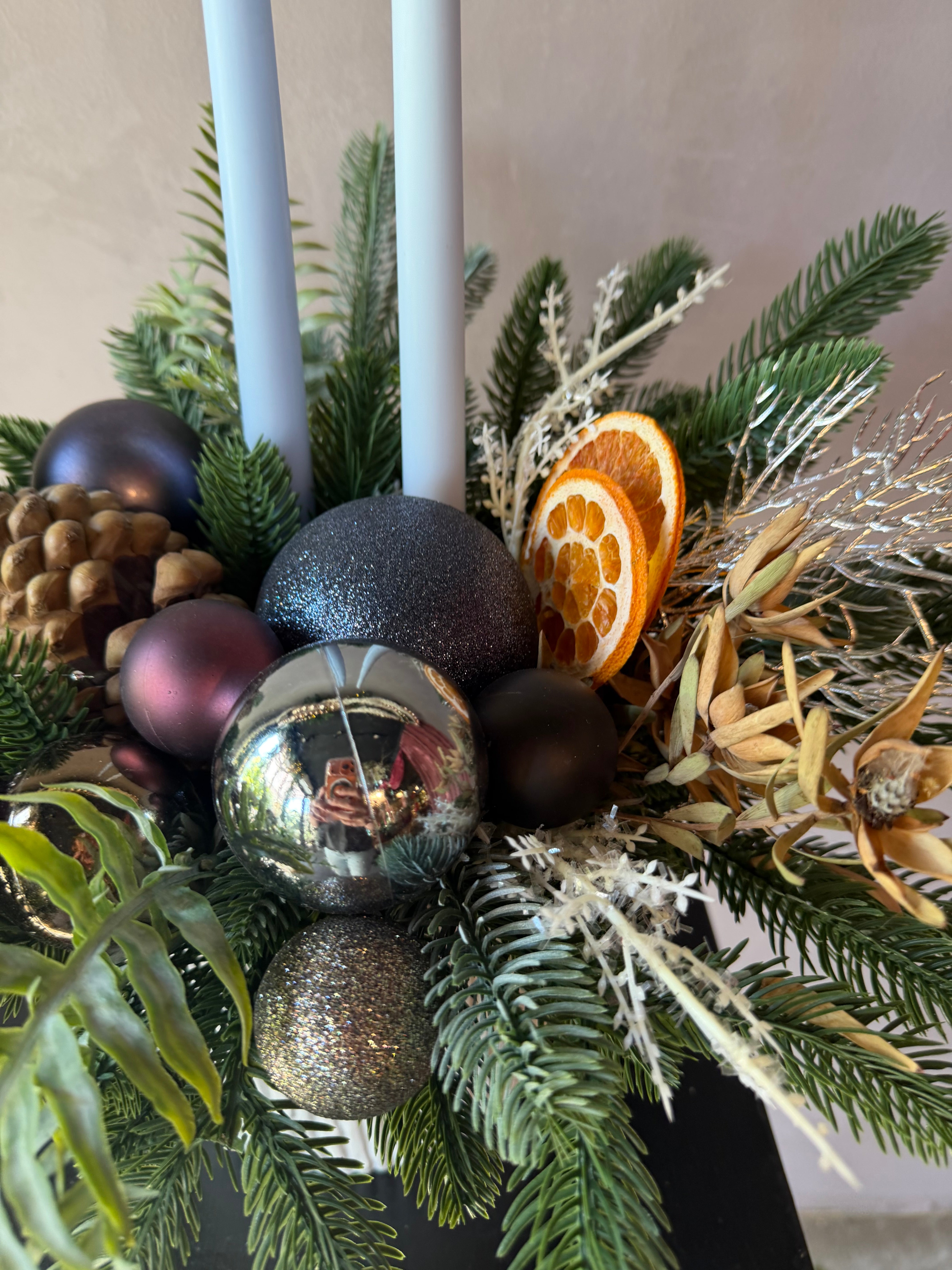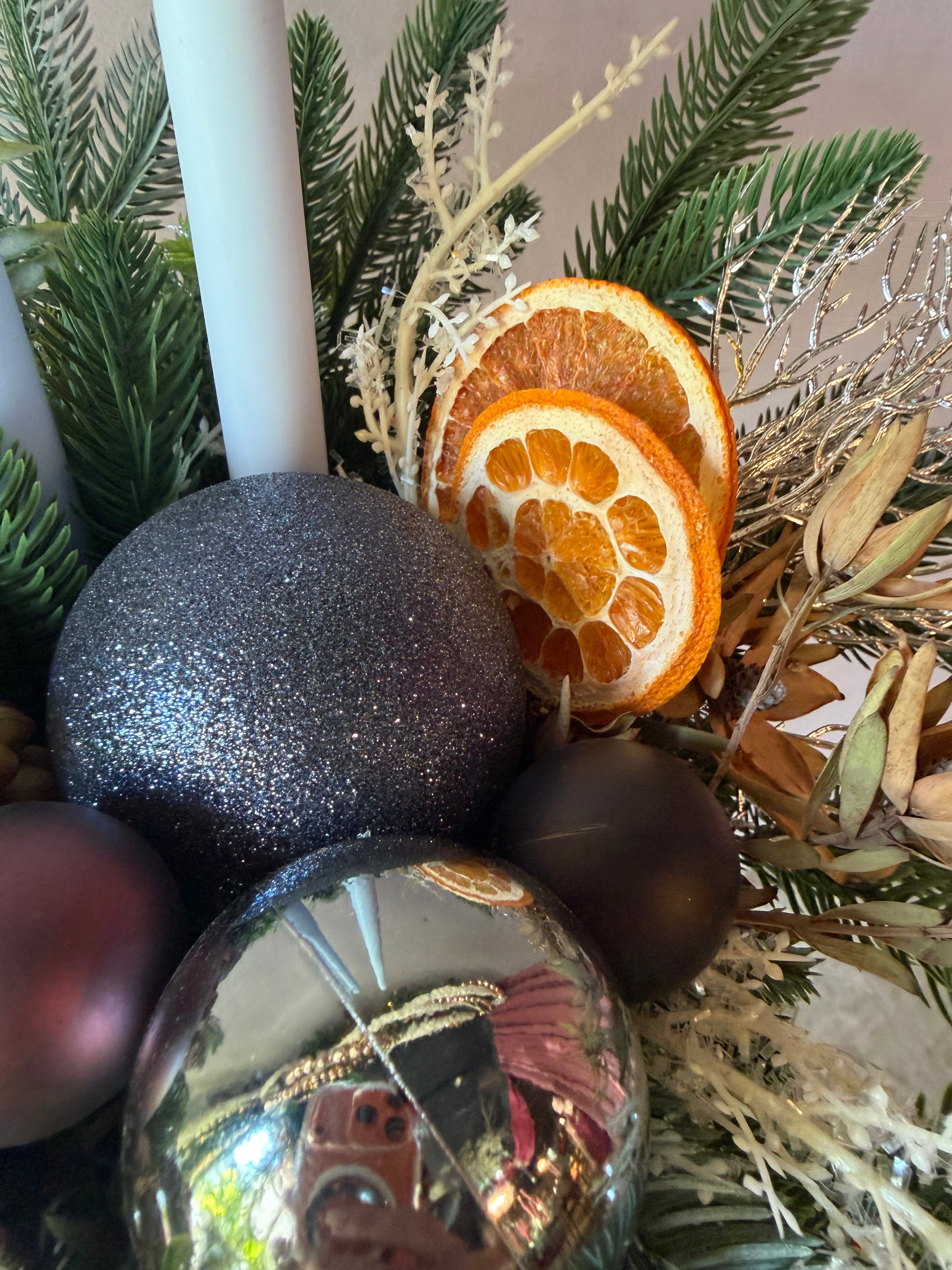 Arreglo de Navidad con 2 velas, Colección 2025, Noël de Oro
