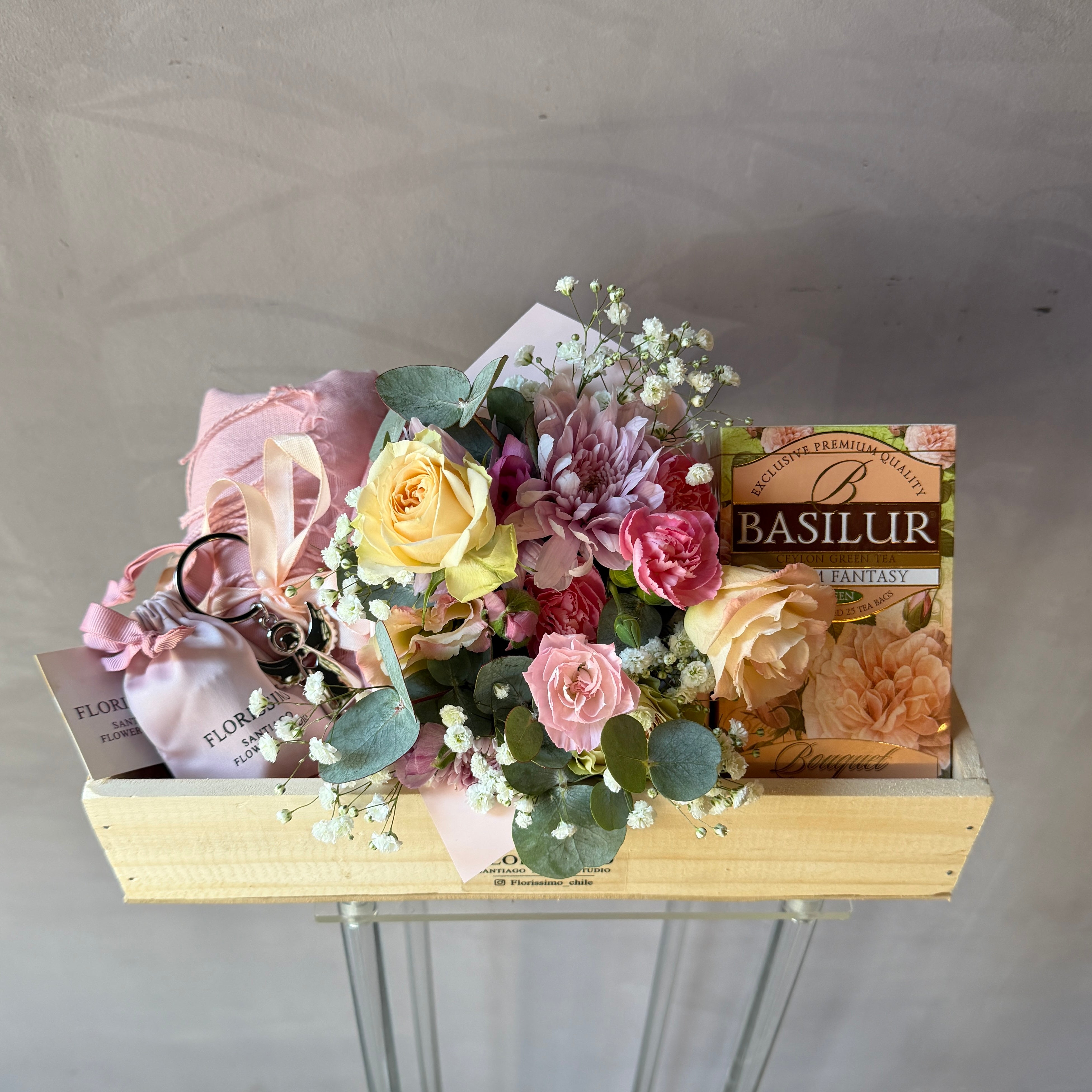 Envía un conjunto de regalos Paz y Meditación a alguien quien necesita tranquilidad. Contiene una caja de té verde floral relajante, un chal de cachemira suave, un llavero en forma de corazón, un arreglo floral y una tarjeta con palabras reconfortantes. Ayuda a alguien encontrar un equilibrio con esta caja de regalo pensativa.